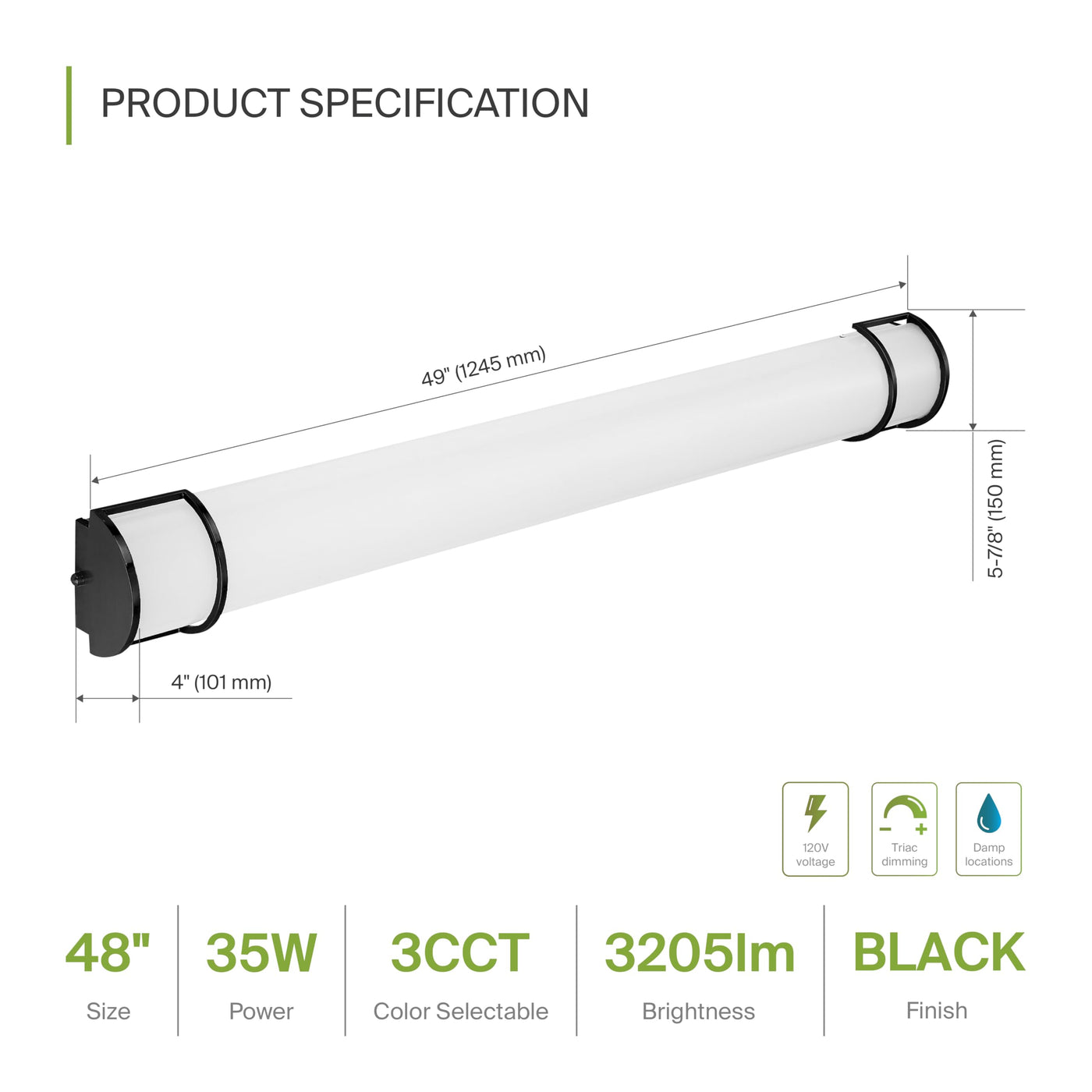 Asd Led 48 Inch Flush Mount Vanity Lighting Fixture | 35W 3200Lm 3000K-5000K 120V | 3Cct, Dimmable, Energy Star, Etl Listed | Ba
