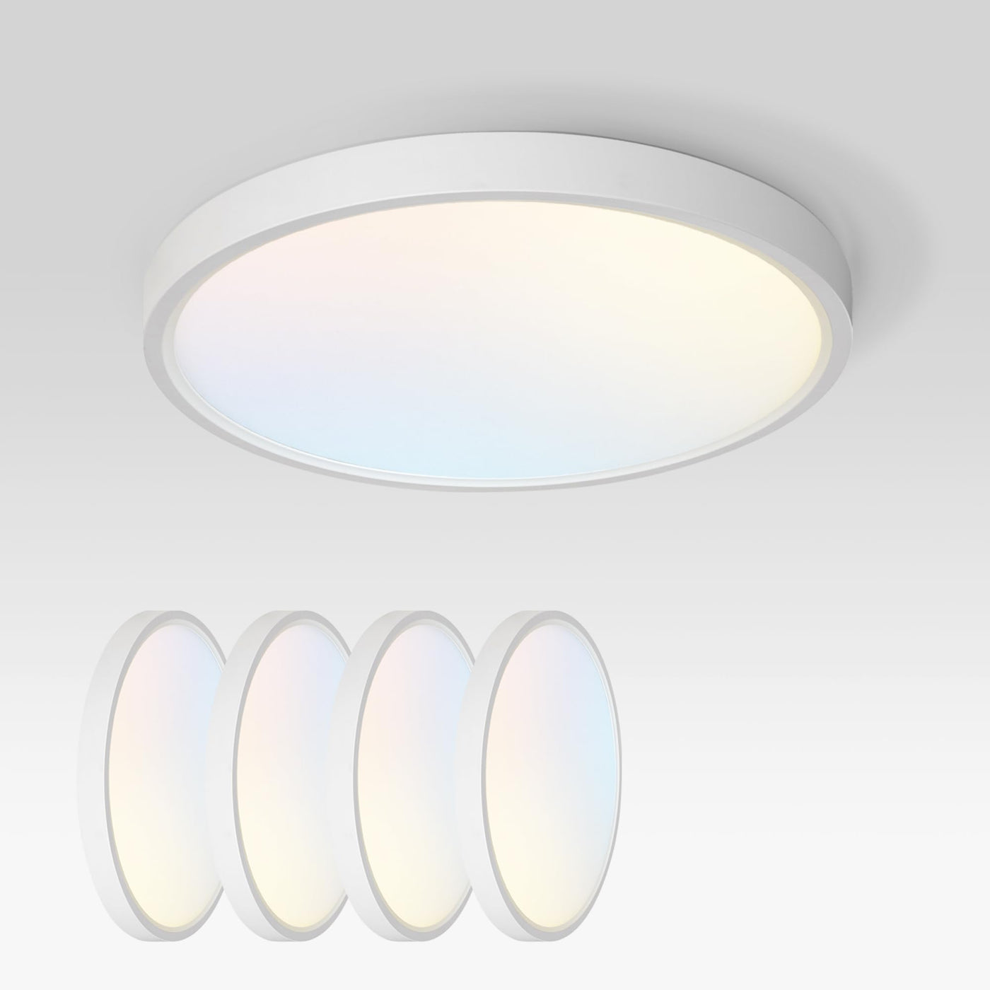 ASD LED Ceiling Light Fixture | 12in Round | 24W 2000LM | Dimmable | White | 4 Pack | Model A-MPR-MV-12D24WH