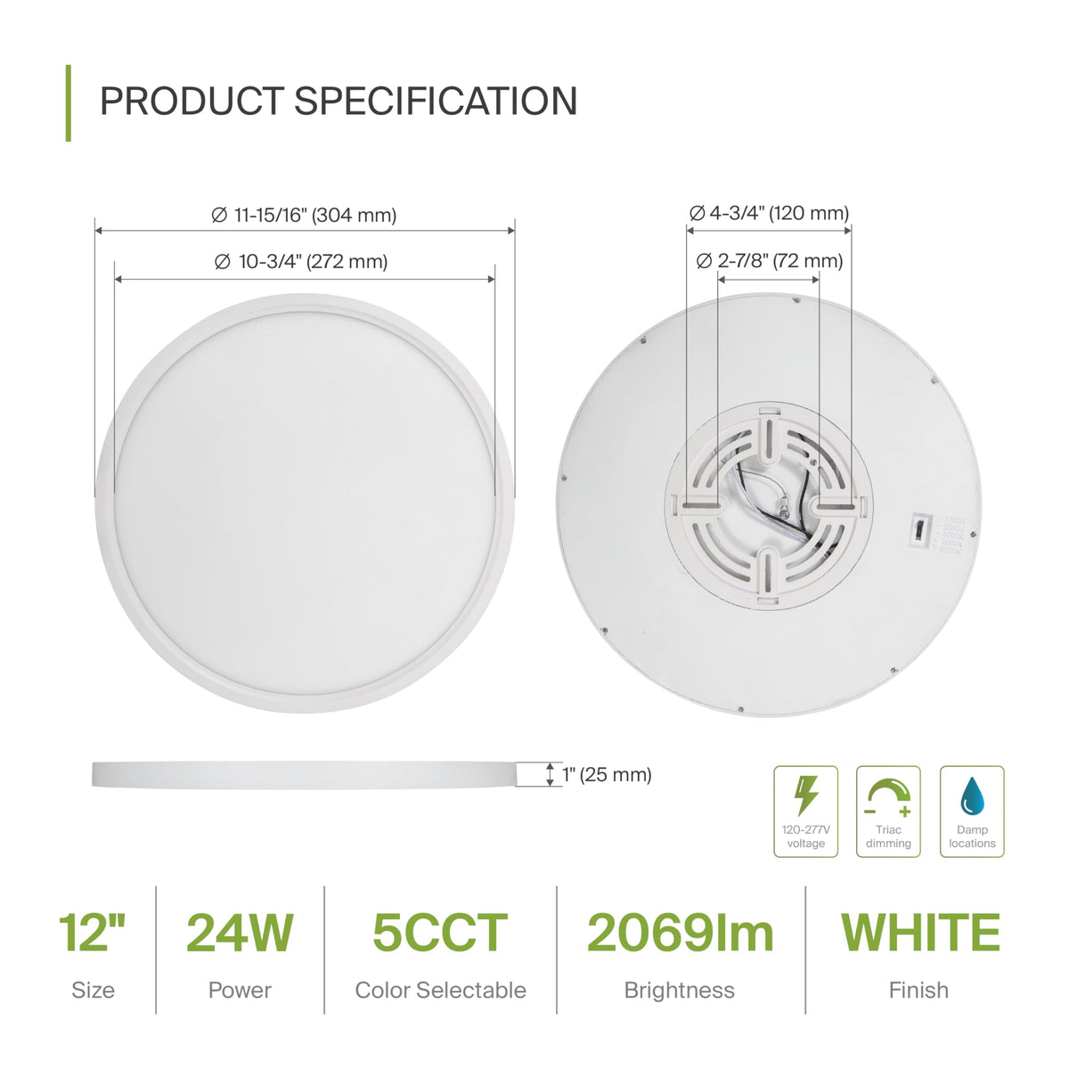 The ASD 12in Round LED Ceiling Light is a versatile lighting solution designed to enhance various spaces in your home or workplace. Ideal for areas such as offices, basements, stairwells, kitchens, and more, this fixture combines energy efficiency with modern aesthetics.