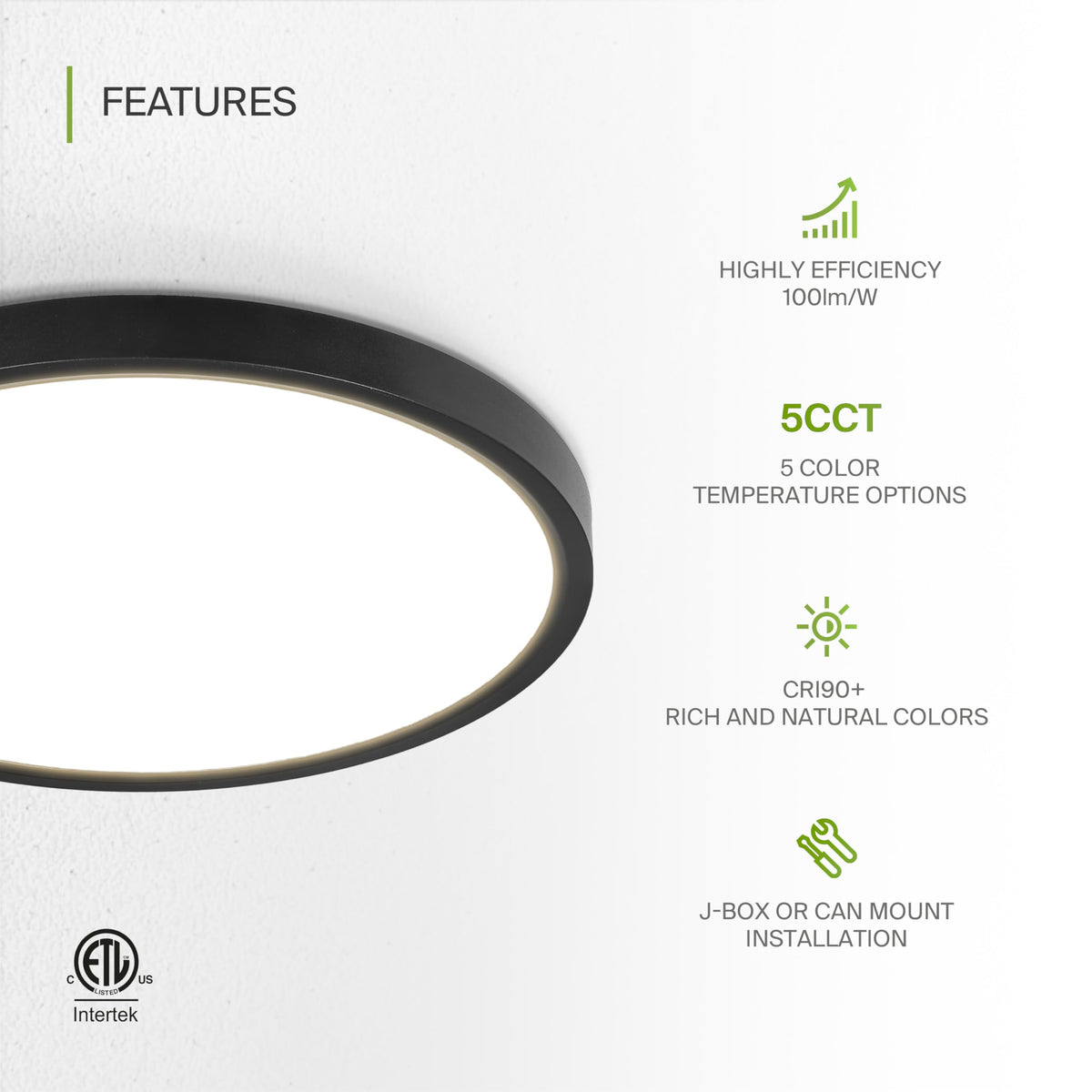 ASD LED Ceiling Light Fixture, 12in Round, 24W, Dimmable, 2000LM, 2700-6000K, Black, Model A-MPR-MV