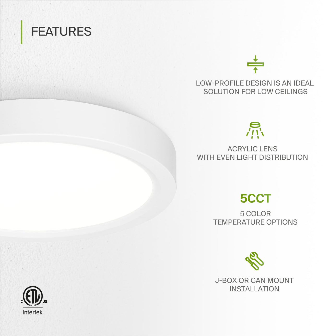 ETL Certified: Complies with stringent safety and energy standards, suitable for damp and wet locations.