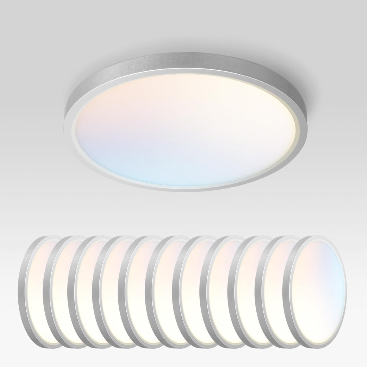 Q: What are the dimensions of the ASD LED ceiling light fixture?A: The ASD LED ceiling light fixture has a diameter of nine inches and is part of a twelve-pack.