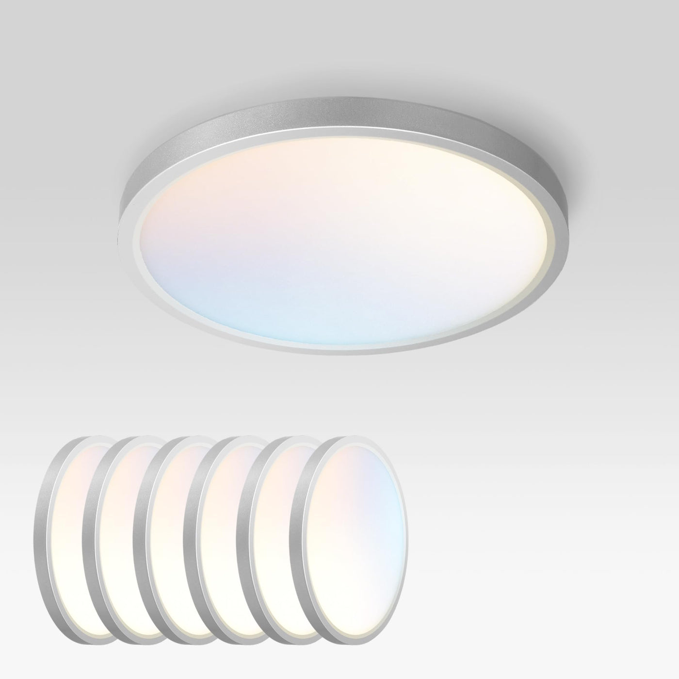 ASD LED Ceiling Light Fixture, 9in Round, Dimmable, ETL Listed, 18W, Nickel, 6 Pack, Model A-MPR-9D18NK-6