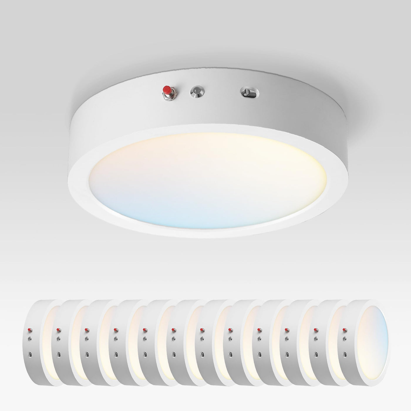 ASD LED Ceiling Light Fixture, Dimmable, 18W 1600LM, 9in Round, White, 12 Pack, ETL Listed, Battery Backup, Model A-MPR