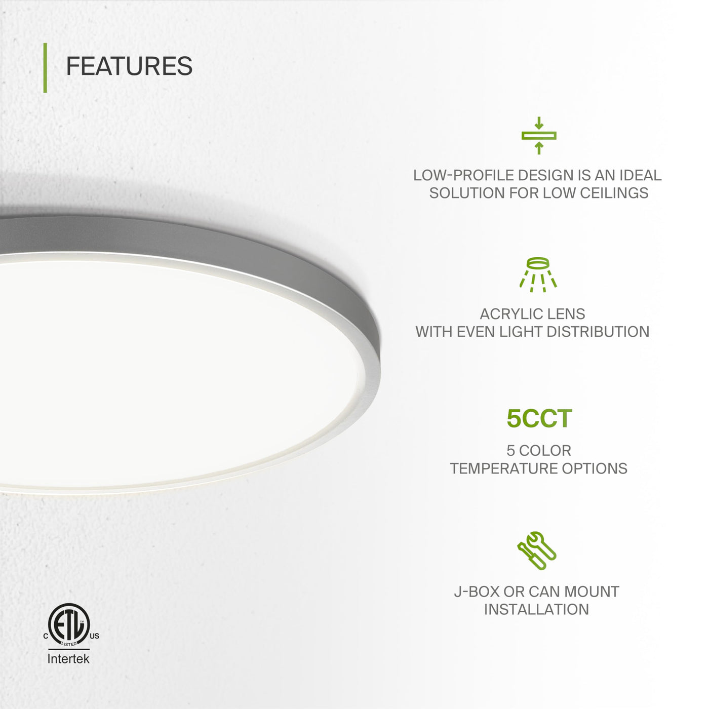 ASD LED Ceiling Light Fixture | Dimmable, 24W, 1900LM | 12in Round, Nickel | Model A-MPR-12D24NK | 12 Pack