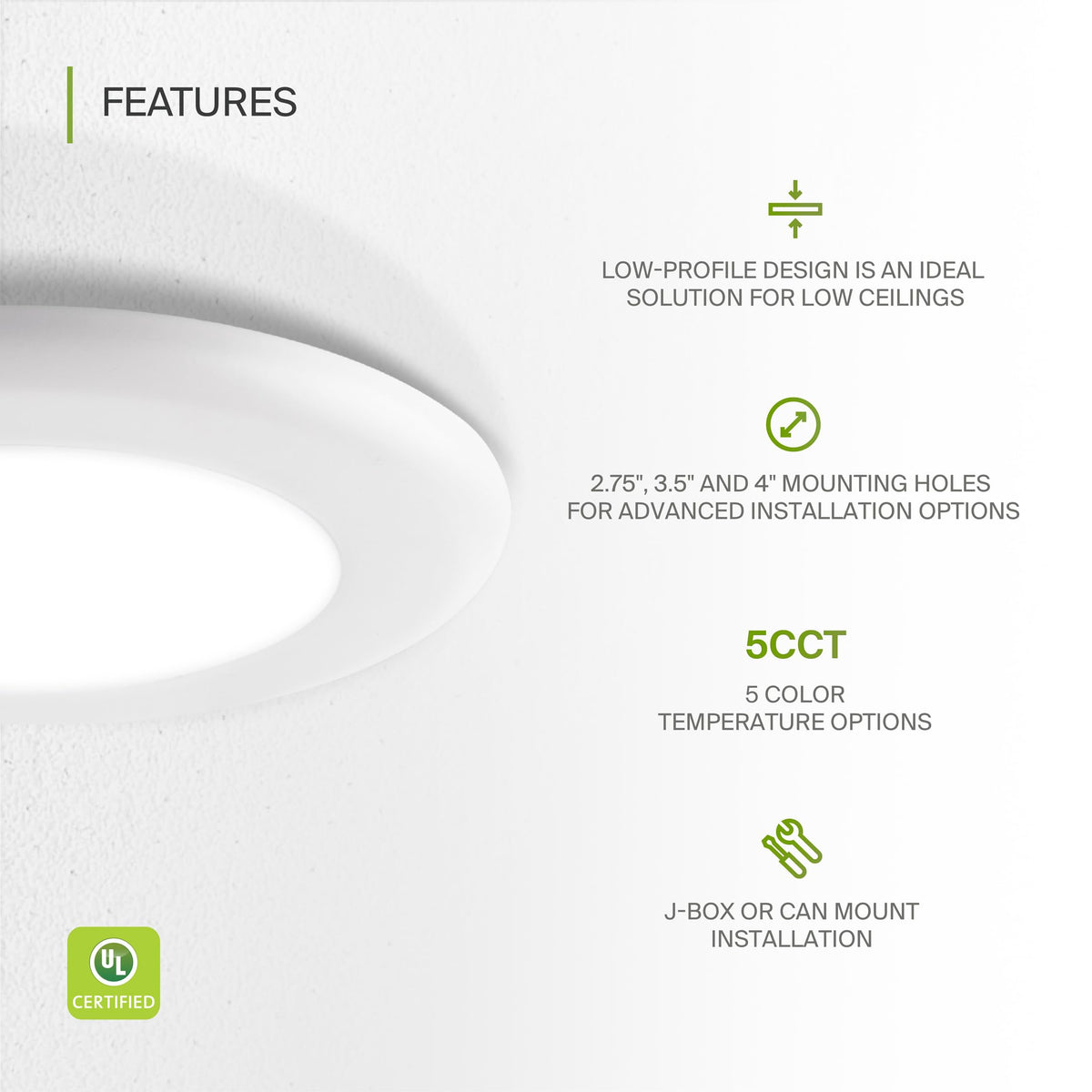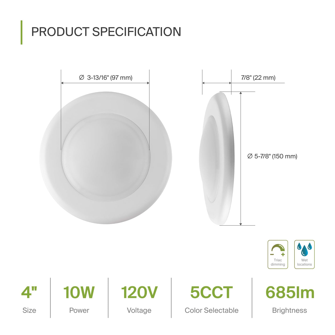 Asd Led Disk Lights 4 Inch | 2700K/3000K/3500K/4000K/5000K, 10W 685Lm | Low Profile Dimmable Flush Mount Ceiling Light, Surface