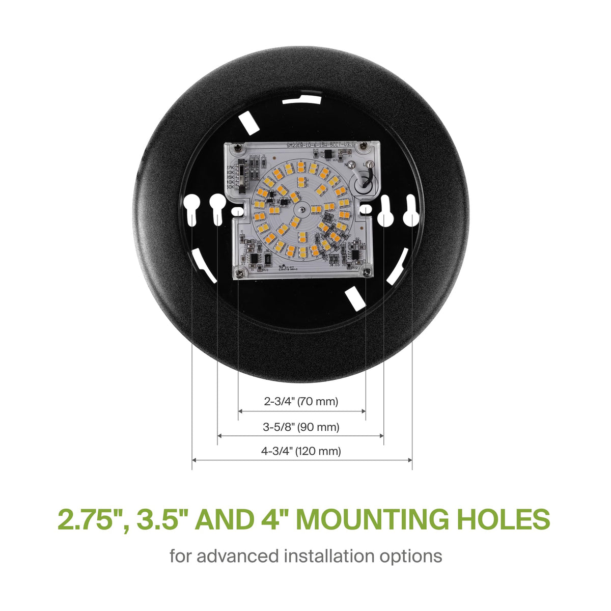 Compatible with existing 2.75in, 3.5in, or 4in J-box installations.