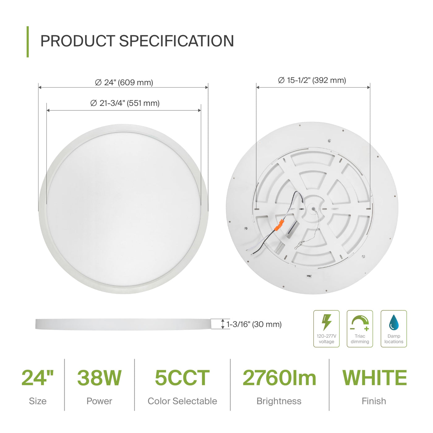 ASD LED Flush Mount Ceiling Light 38W 2700LM Dimmable 24in Round White Model A-MPR-24D38WH