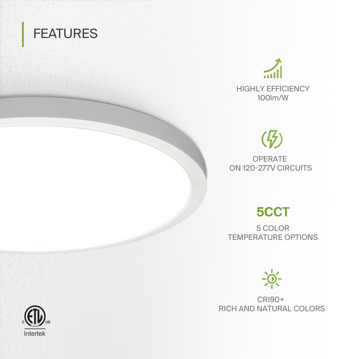 Constructed with durable plastic housing and a frosted acrylic shade, this ceiling light combines style and resilience. The matte white diffuser cover ensures a soft, even illumination, making it suitable for both residential and commercial environments. With its multi-voltage operation, the light functions effectively within a voltage range of 100-277V, accommodating fluctuations without compromising performance.