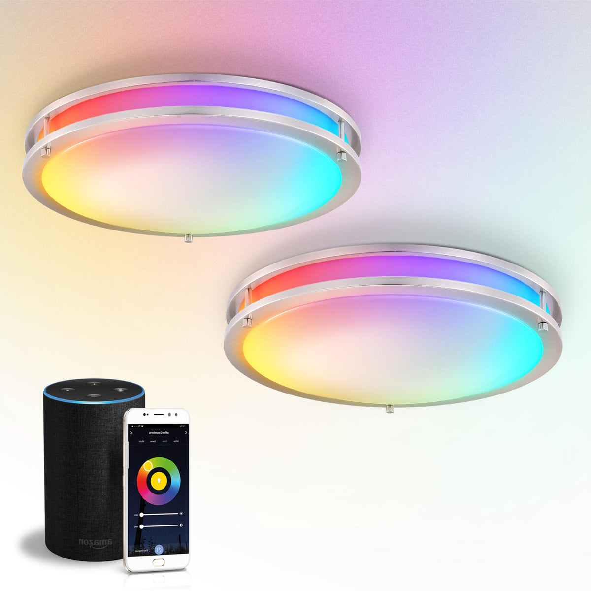 ASD LED Flush Mount Light Fixture 18 Inch, 28W, RGB-2700K-6500K, Brushed Nickel, 2 Pack, Model A-DR18D28S