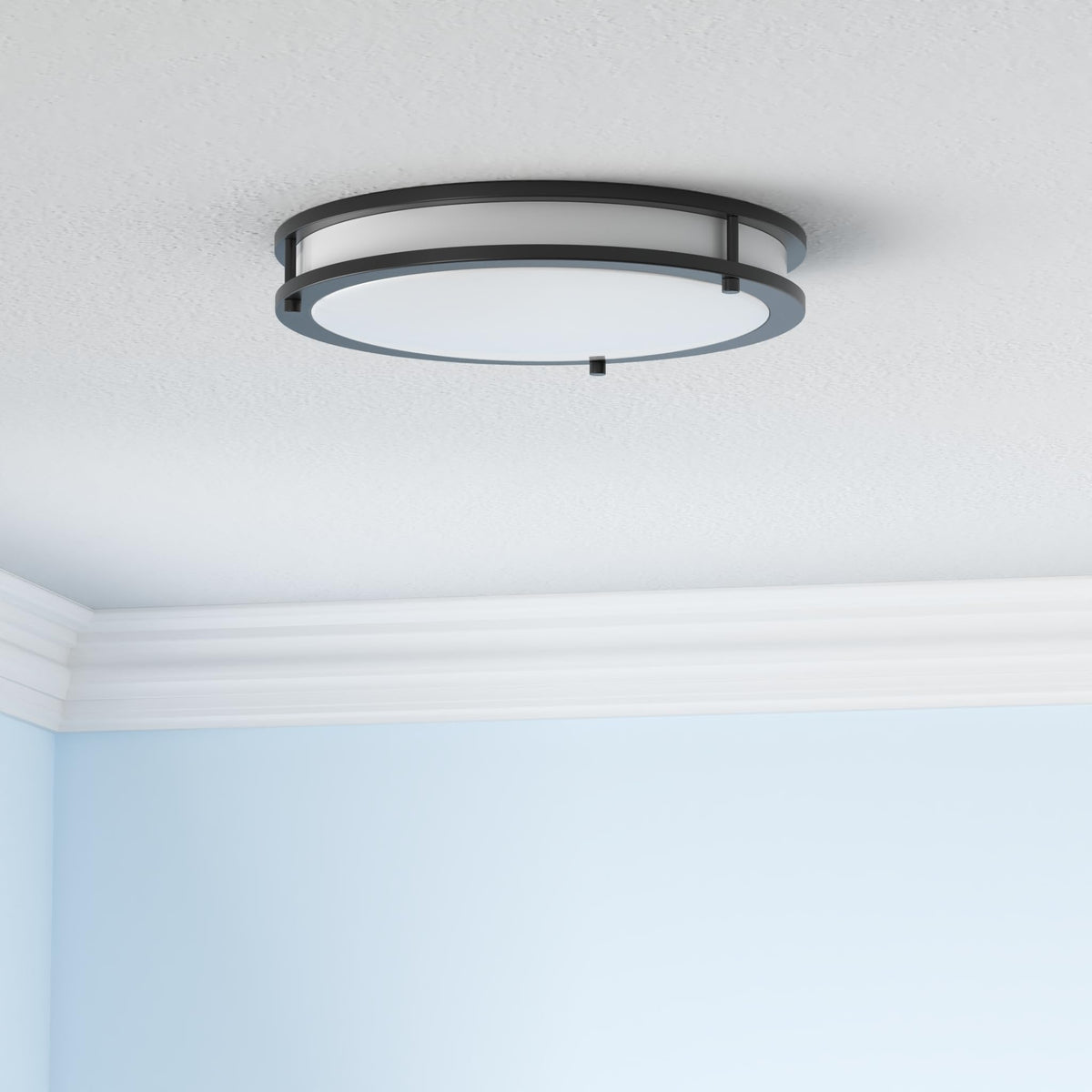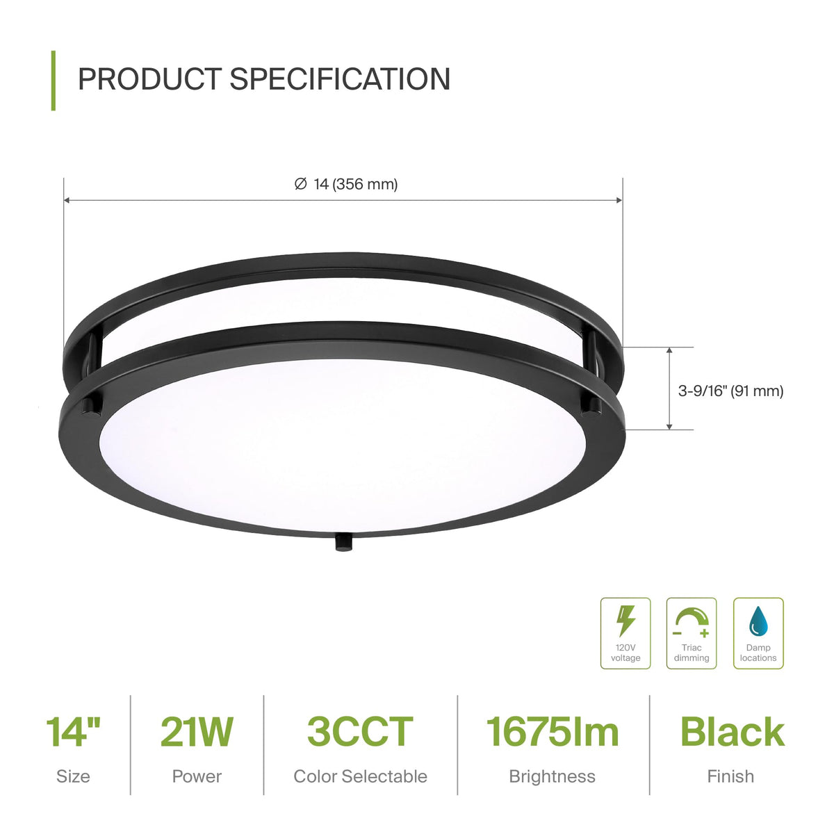 ASD LED Flush Mount Light Fixture, 21W 1700LM, 3000K-5000K, Dimmable, 14 Inch, Black, Model A-LFMDR-
