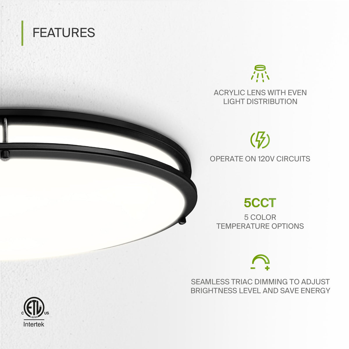 ASD LED Flush Mount Light Fixture, 24 Inch, 38W, Dimmable, ETL Listed, Black, Model A-FMOV-24D38BK
