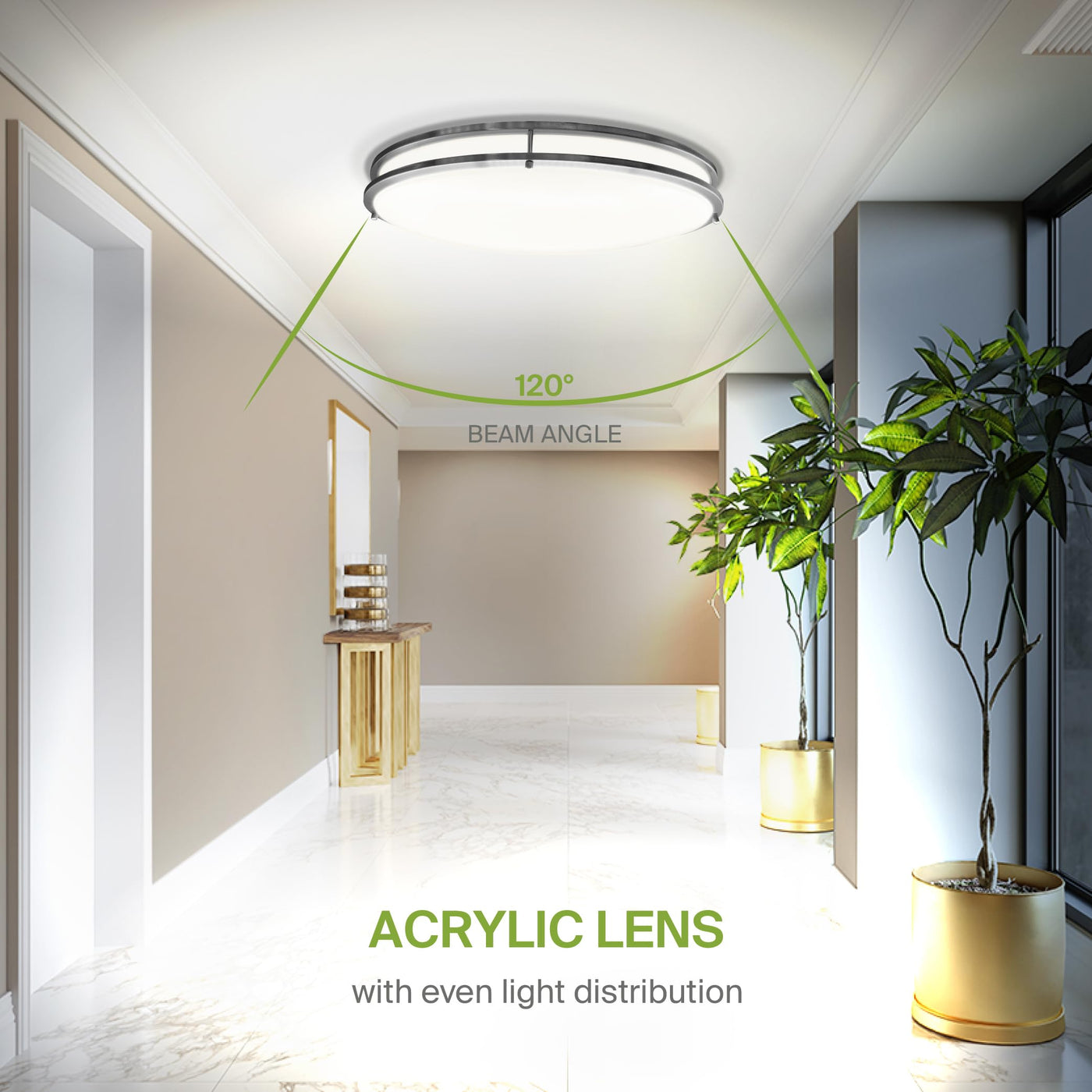 This ceiling light features a durable alloy steel housing with a frosted acrylic shade, providing a soft and even light distribution. The matte white diffuser cover adds a contemporary touch while ensuring that the light is gentle on the eyes. Engineered with longevity in mind, this fixture is perfect for both residential and commercial spaces, offering dependable performance for years to come.
