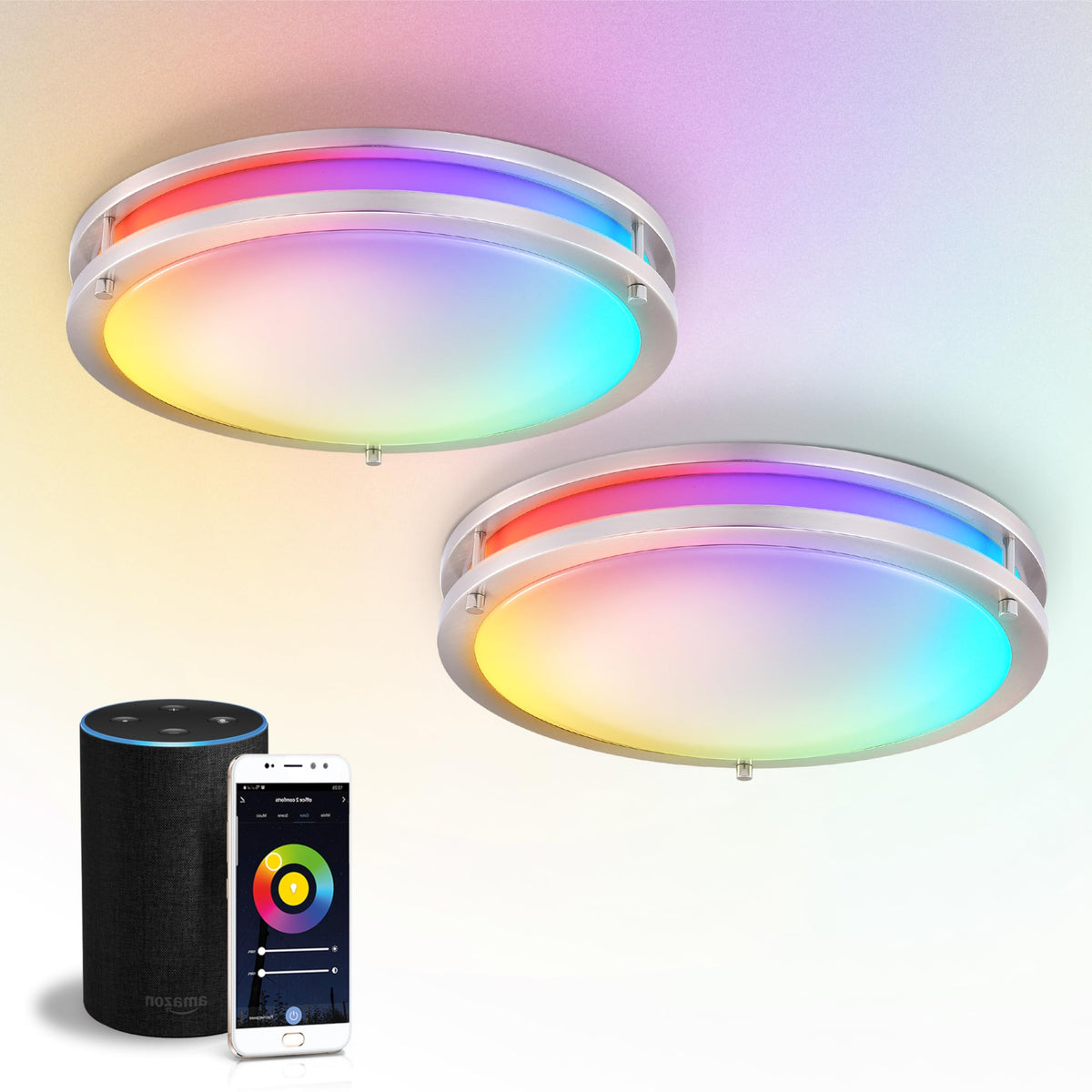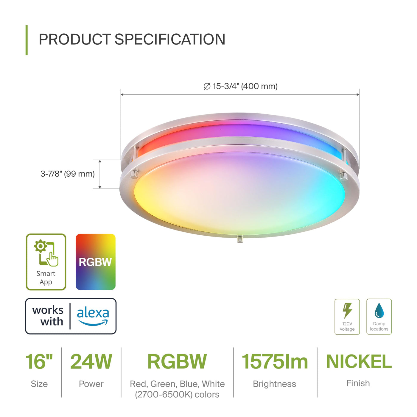 ASD LED Flush Mount Light Fixture, 24W 1575LM, RGB-2700K-6500K, 16 Inch, Brushed Nickel, 2 Pack, ETL Listed