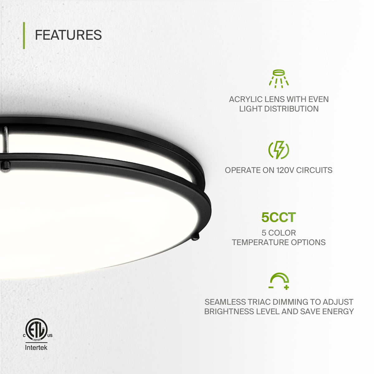 ETL Certified: Complies with stringent safety and energy standards, rated for use in dry and damp locations.