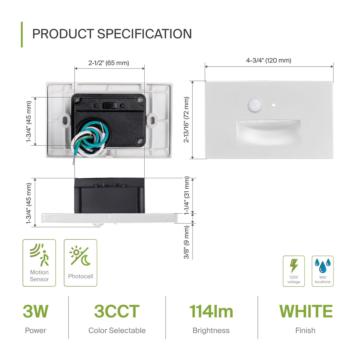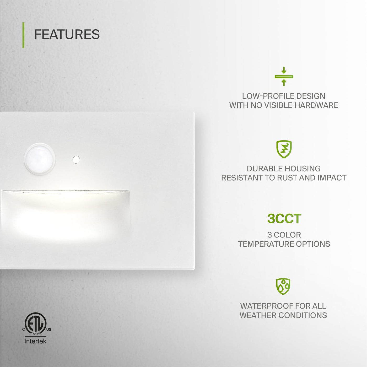 Q: How does the motion sensor feature work in this light fixture?A: The motion sensor in the ASD LED Recessed Step Light detects movement and automatically turns the light on when motion is detected. It can be adjusted for sensitivity, allowing you to customize the detection coverage and lighting duration based on your needs.