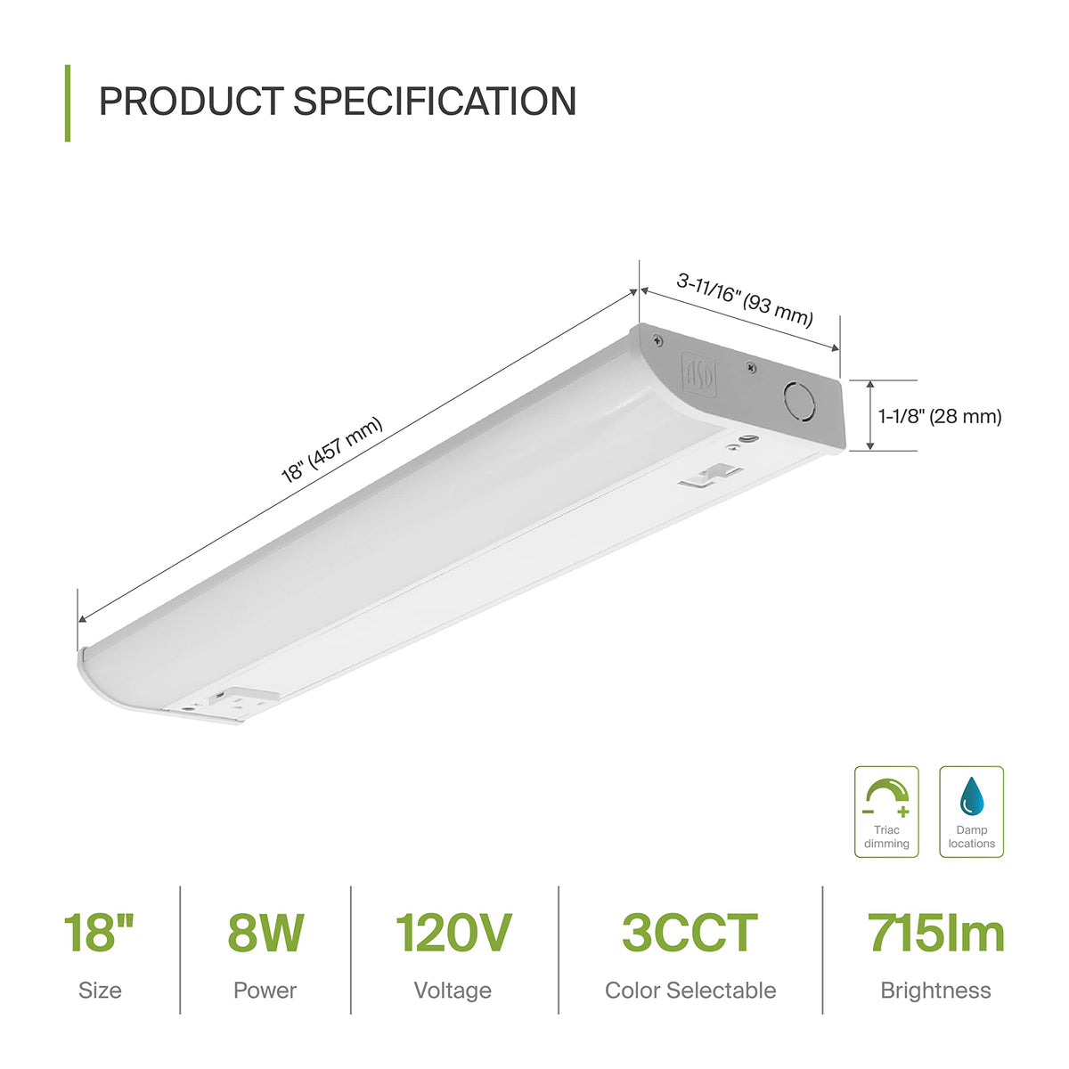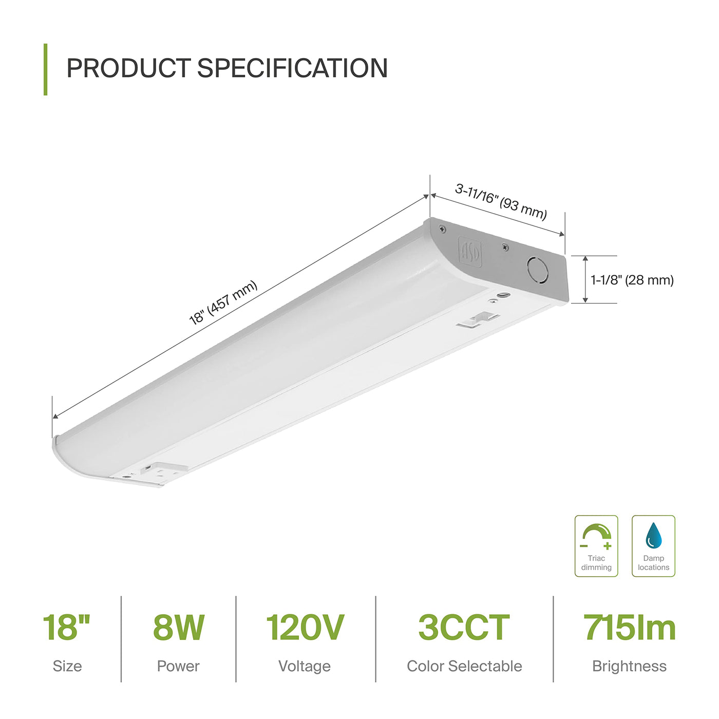 Q: Is this product suitable for damp locations?A: Yes, the ASD LED Under Cabinet Lighting is damp location rated, making it ideal for use in areas like kitchens or bathrooms where moisture may be present.