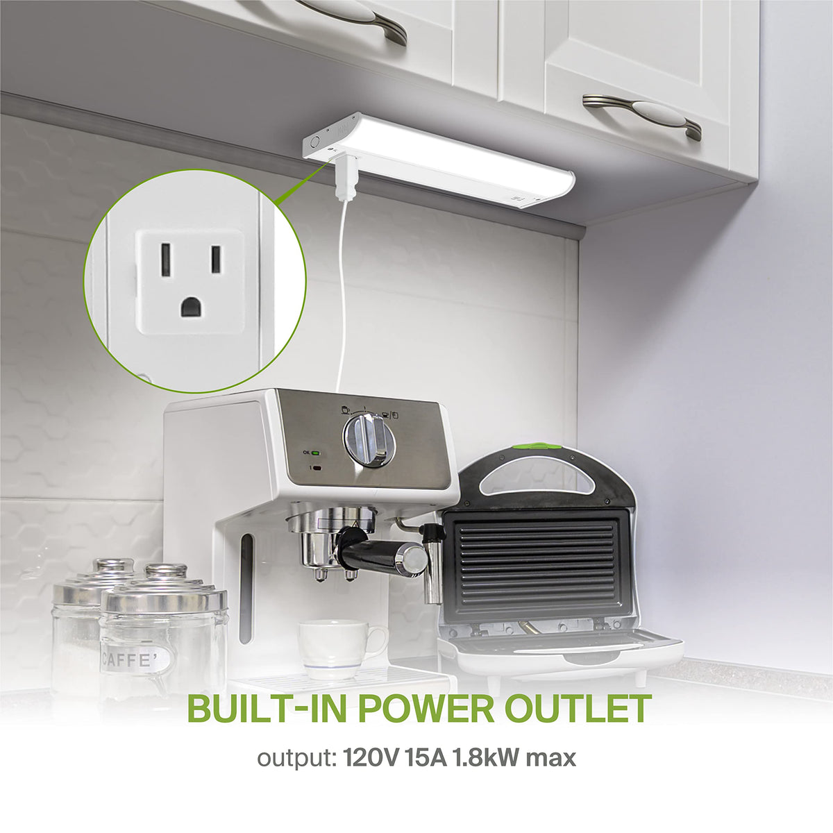 Asd Led Under Cabinet Lighting With 1 Power Outlet, 18 Inch 8W 715 Lm, Hardwired Under Cabinet Lights For Kitchen, 3000K/4000K/5