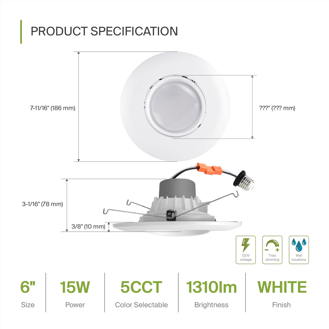 Led Downlight Retrofit Kit Gimbal Is Perfect For Sloped Ceilings And Directional Lighting As The Light Can Pivot And Rotate For Illumination In The Desired Area. Smooth Dimming Capabilities Ranging From 10% To 100% With Modern Led Dimmers Allow You To Control The Look And Feel Of Your Space. The 95 Beam Angle And Cri90+ Grant You Smooth And Even Lighting. It Is Also Cct Selectable, Letting You Set It To 2700K, 3000K, 3500K, 4000K, Or 5000K With A Simple Switch.