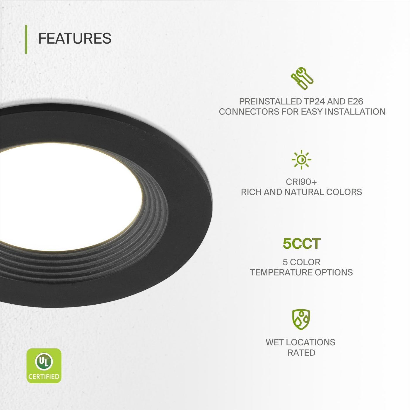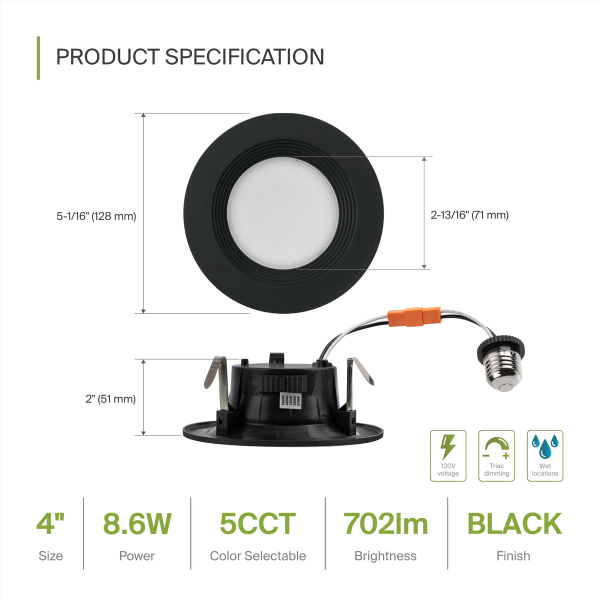 Asd Retrofit Led Recessed Lighting 4 Inch | 9W 700 Lm Wet Rated Dimmable Ceiling Downlights | 2700K-5000K Adjustable Cri90 Black