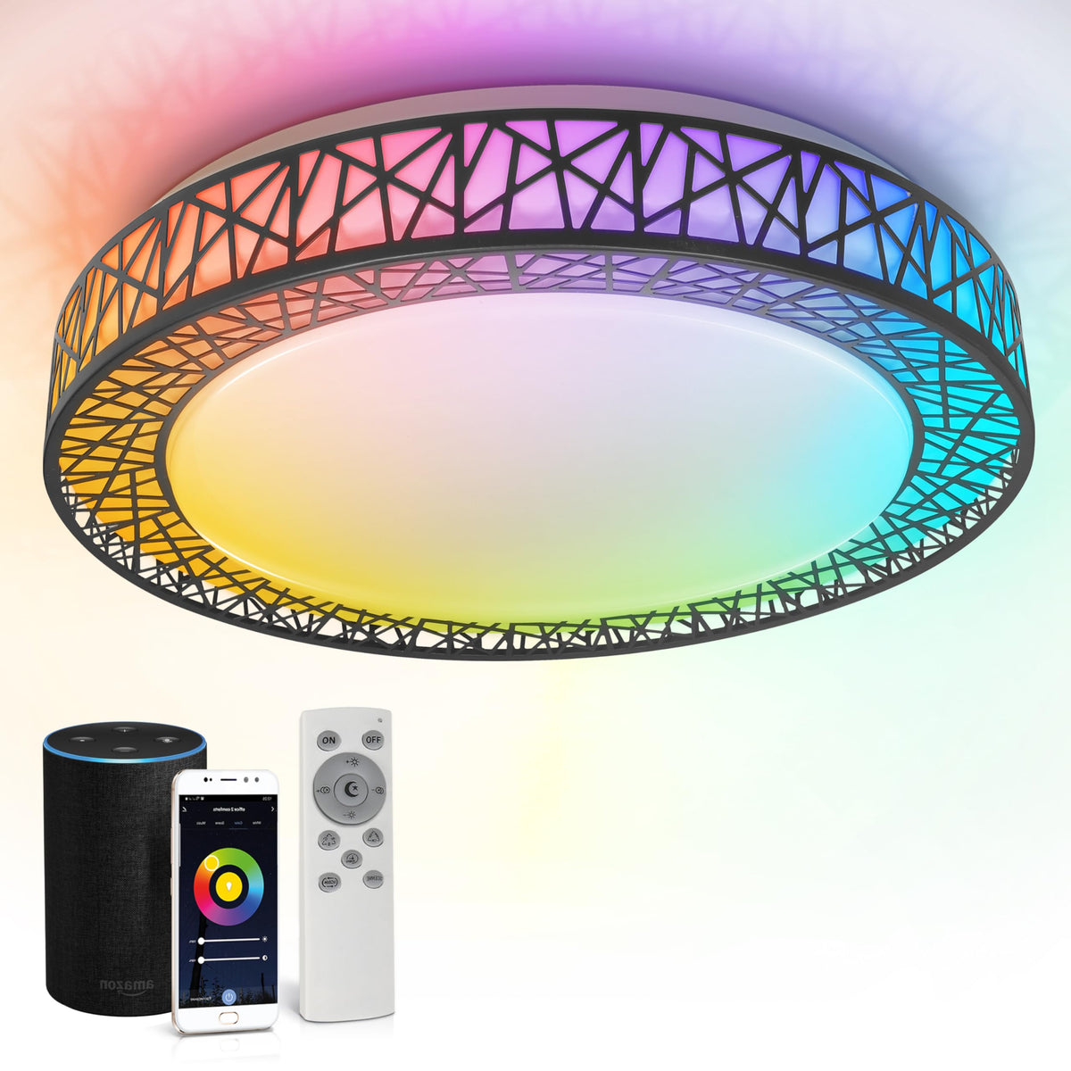 Q: How does the color-changing feature work on this ceiling light?A: The ceiling light features a multicolor RGBW design and can be controlled through the ASD SMART App or remote control, allowing users to choose from millions of color options and different lighting patterns.