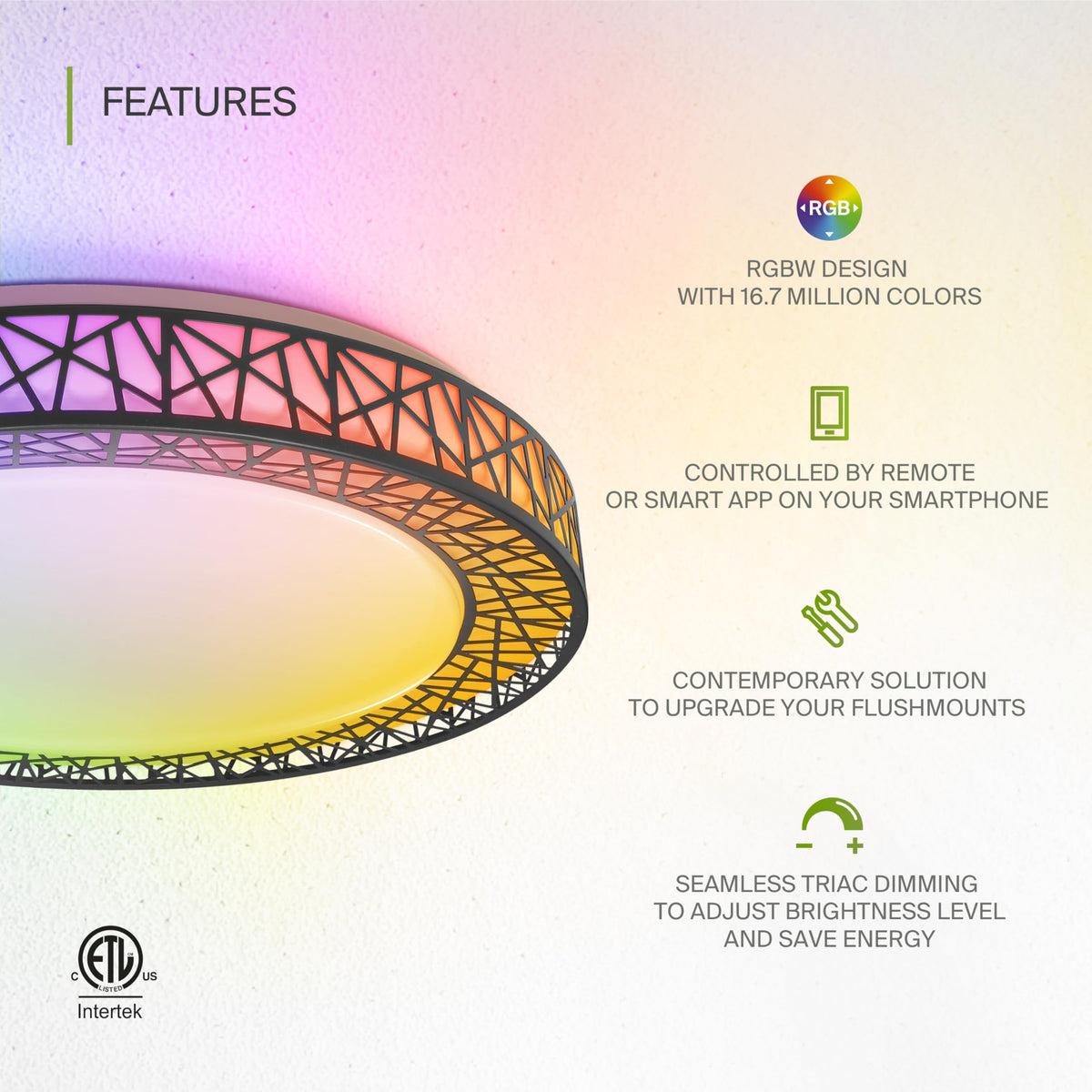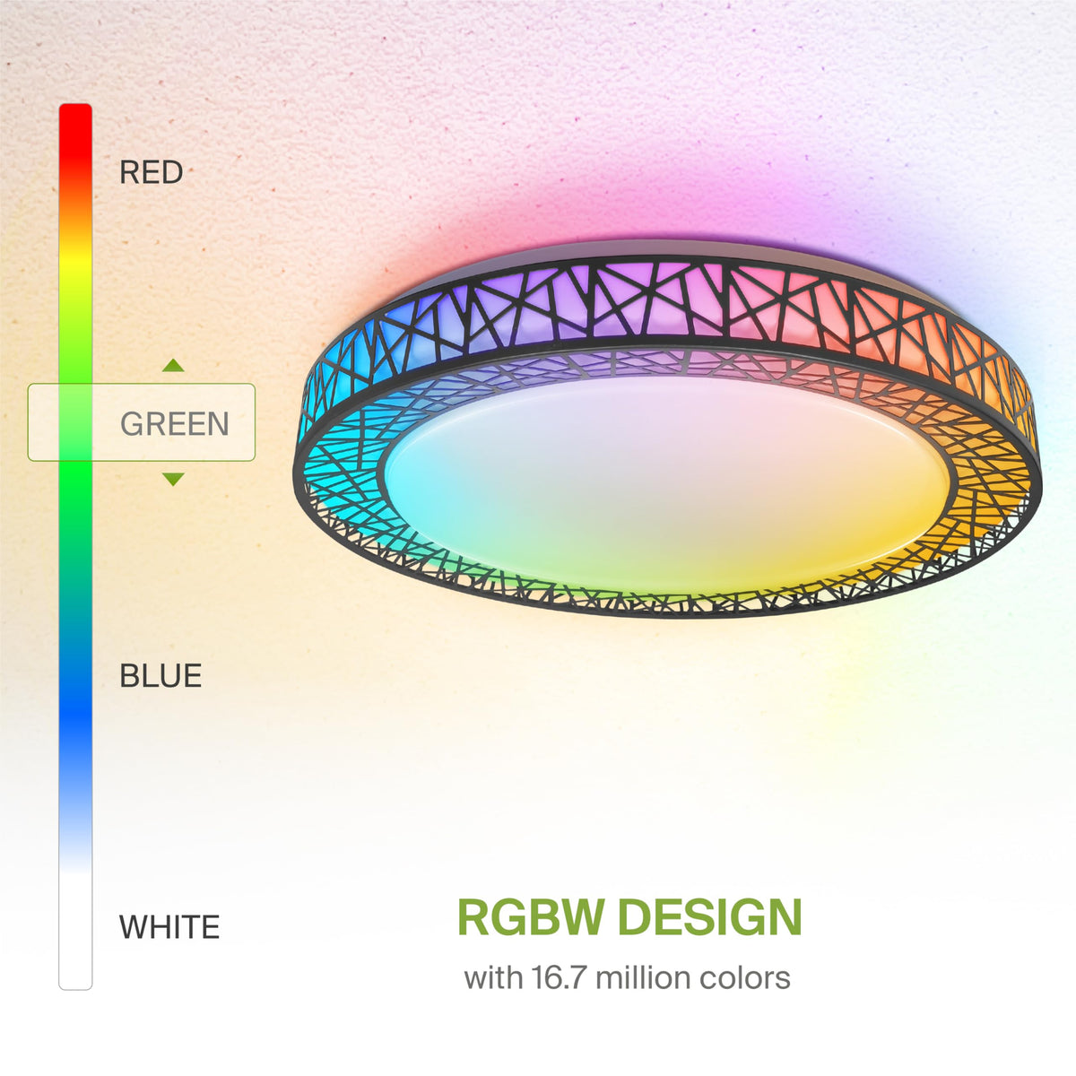 ASD Smart RGBW Flush Mount Ceiling Light 20 Inch, 42W, Dimmable, WiFi Control, Matte Black, Model A-LFM20D42SRGBW-B