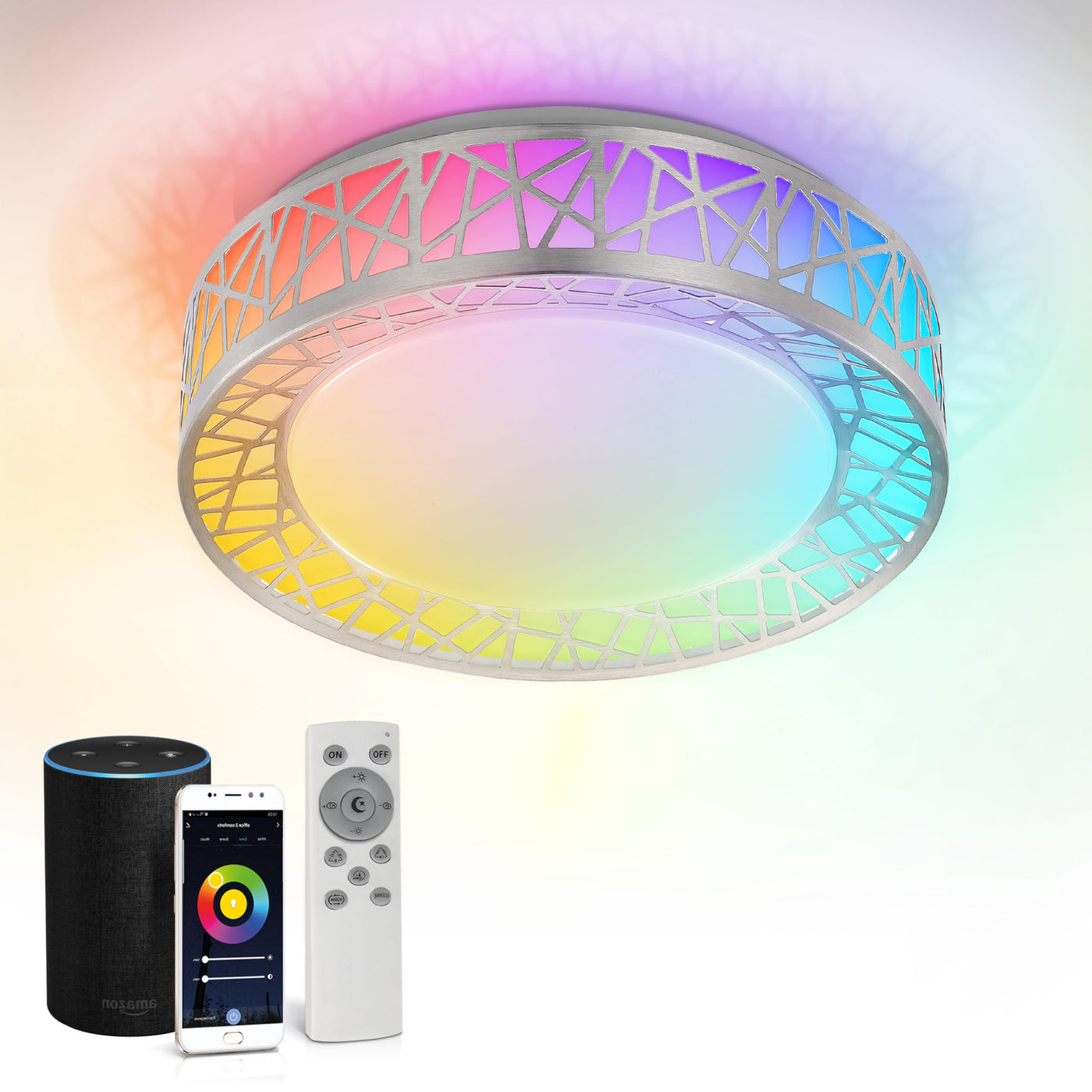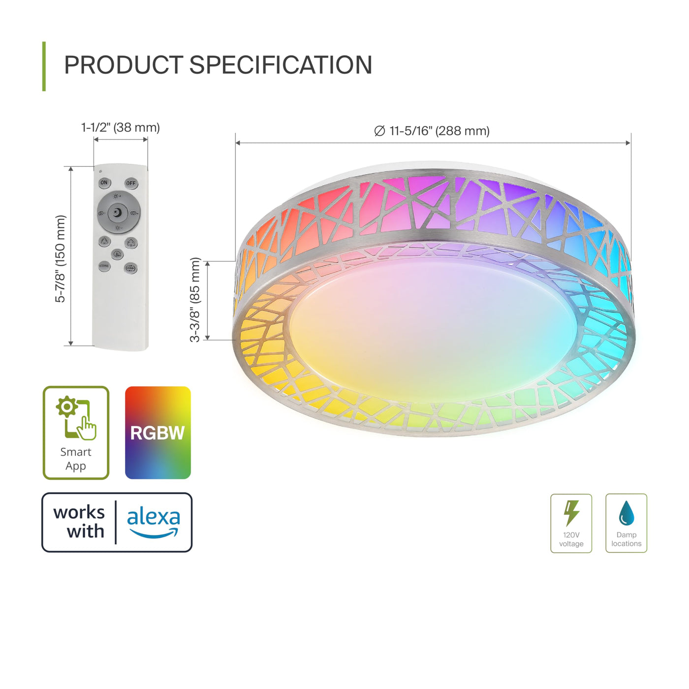ASD Smart RGBW Flush Mount Ceiling Light, 20W, Dimmable, 12in, Brushed Nickel, WiFi Control, Model A-LFM12D20SRGBW-N