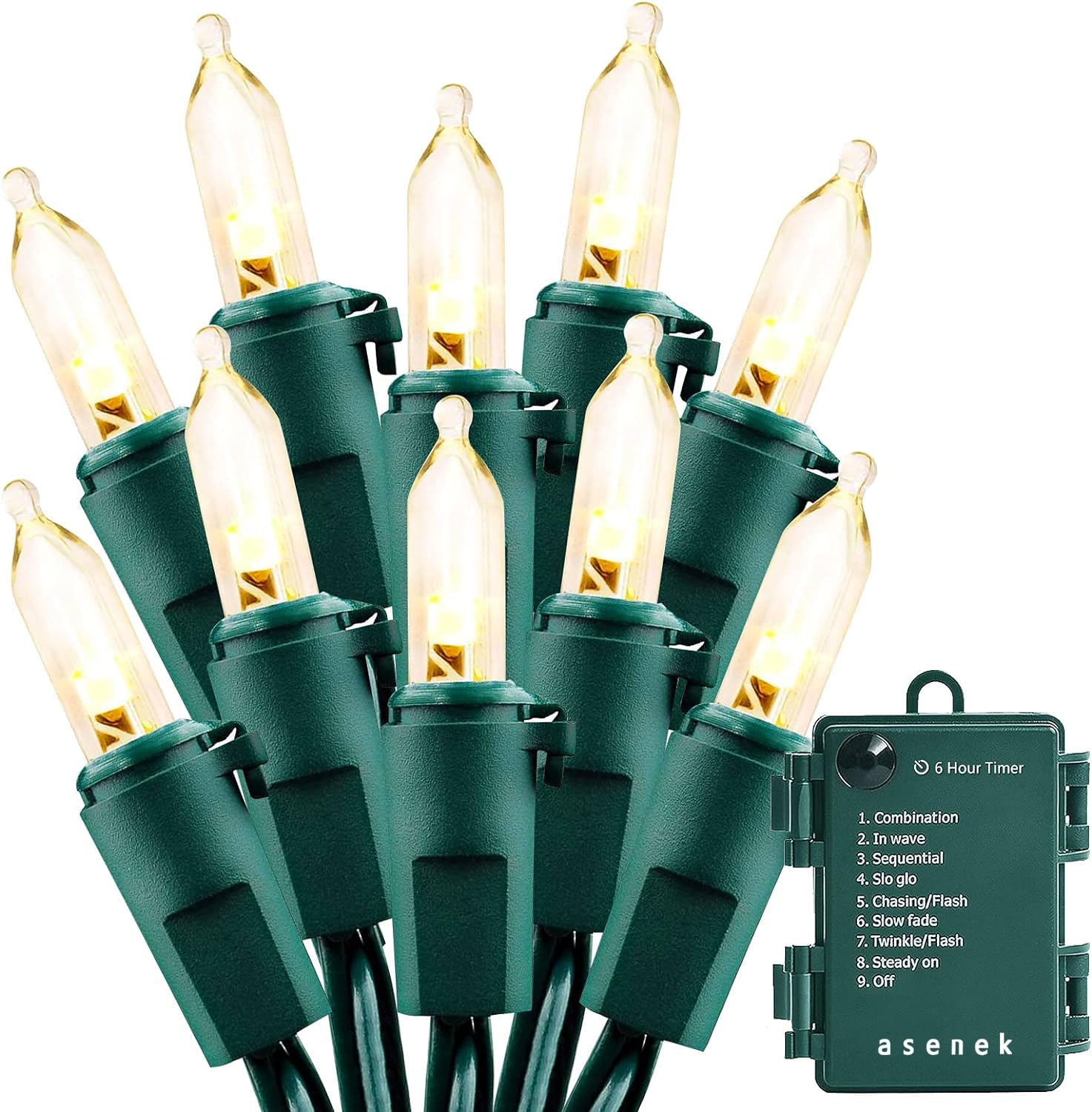 Asenek Christmas Lights - Battery Operated String Lights 50 Led String Lights Mini Lights With Auto-Timer And 8 Lighting Modes For Christmas Wreath Party Wedding Garden Home Decoration, Warm White