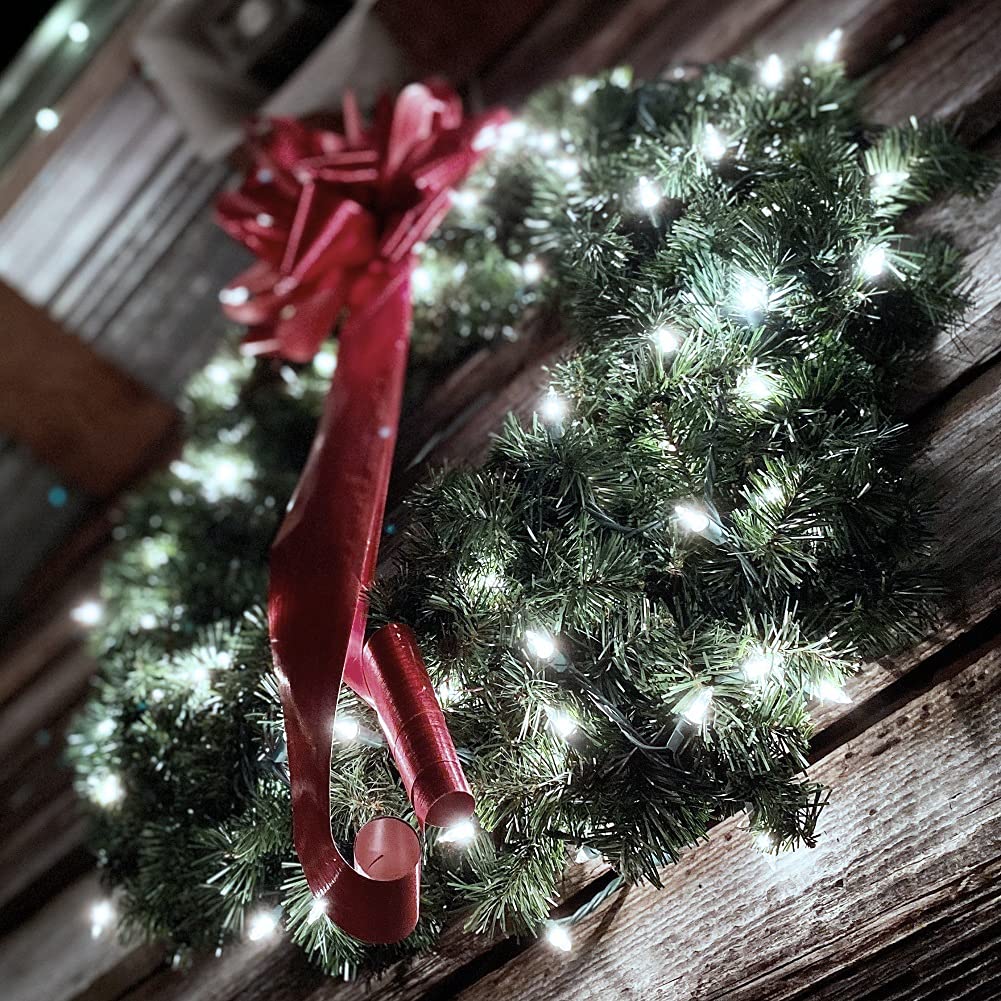 Asenek Christmas Lights - Battery Operated String Lights 50 Led String Lights Mini Lights With Auto-Timer And 8 Lighting Modes For Christmas Wreath Party Wedding Garden Home Decoration, White