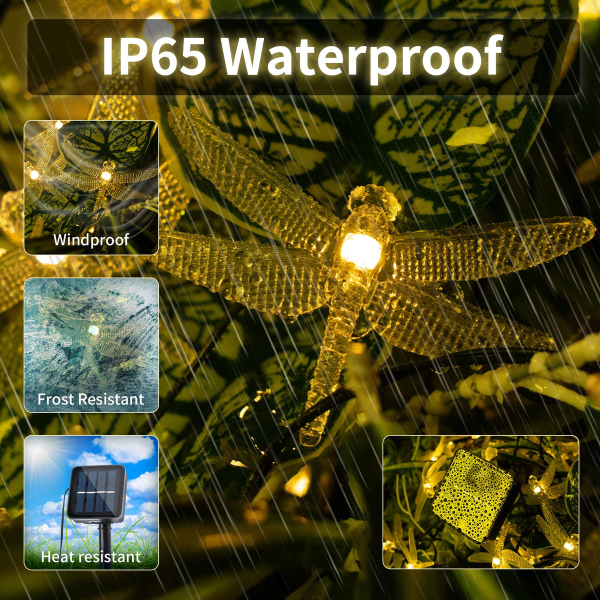 Asfsky Dragonfly Solar Lights Outdoor 50 Led Dragonfly Lights Waterproof Warm White