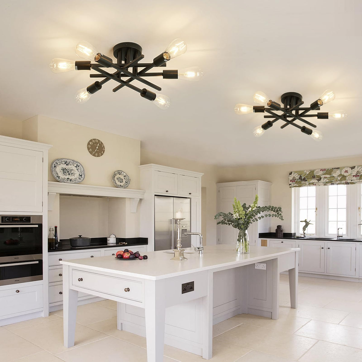 Asgyisa 6-Lights Semi Flush Mount Ceiling Light Fixture 2-Pack Black Vintage Matte Sputnik Chandelier Ceiling Lamp For Farmhouse