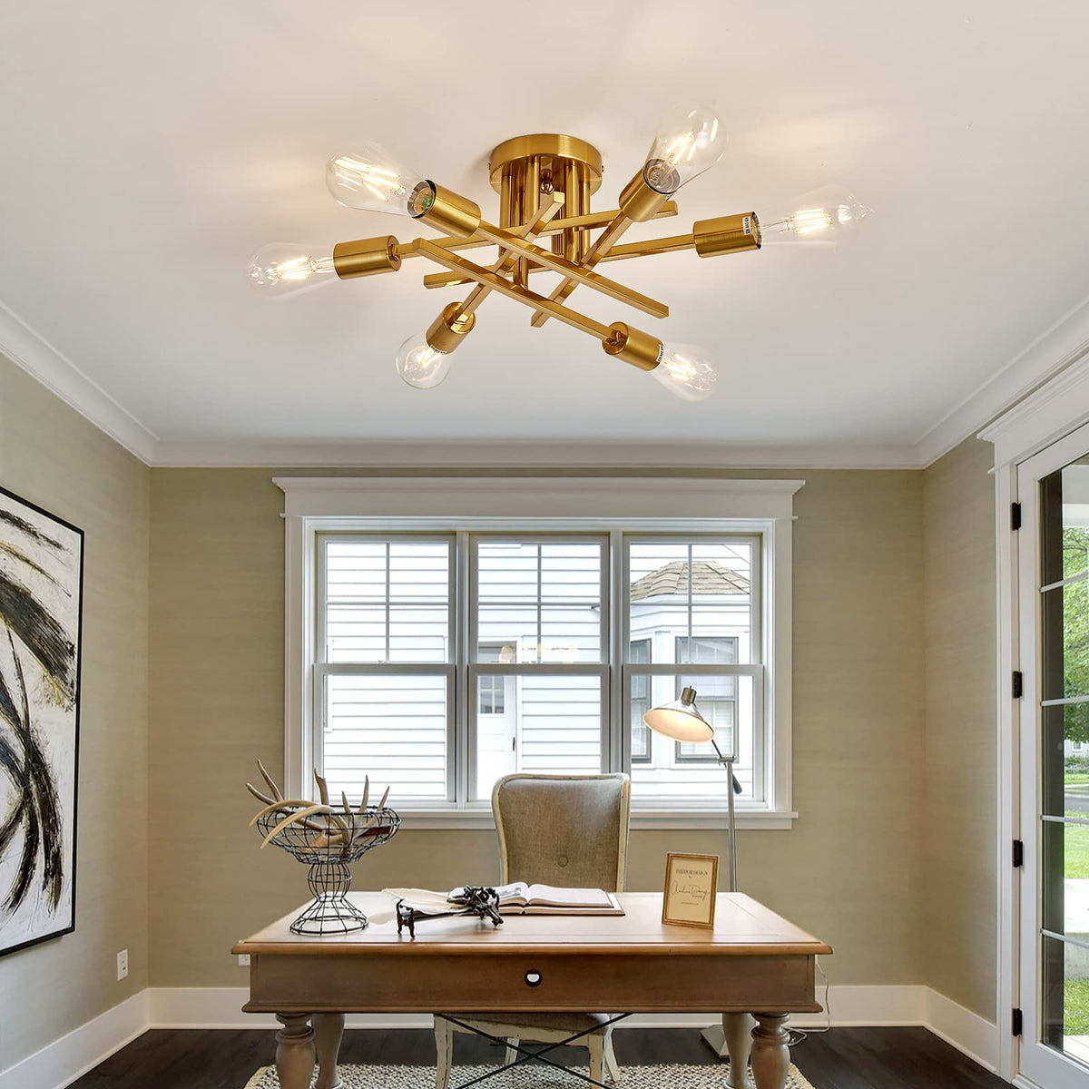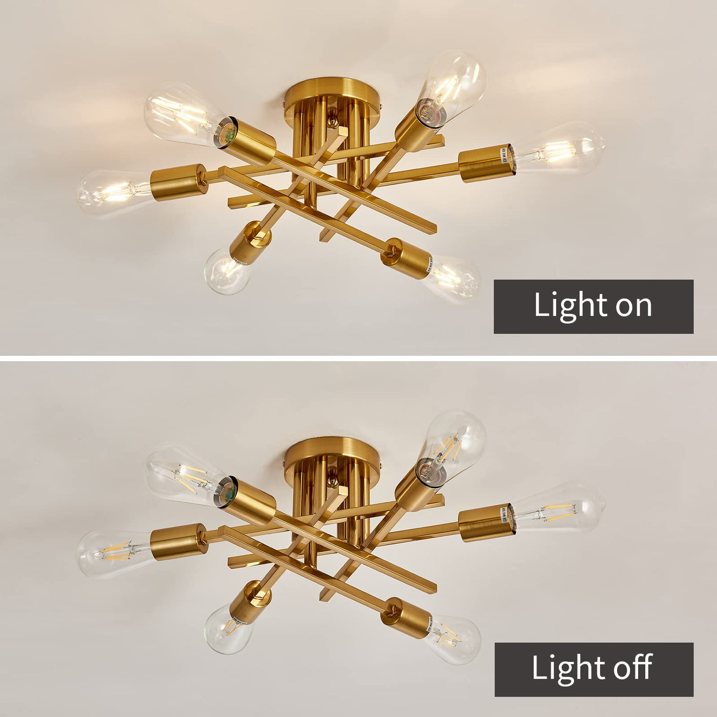 Asgyisa 6-Lights Semi Flush Mount Ceiling Light Fixture Gold Modern Matte Sputnik Chandelier Vintage Ceiling Lamp Farmhouse For