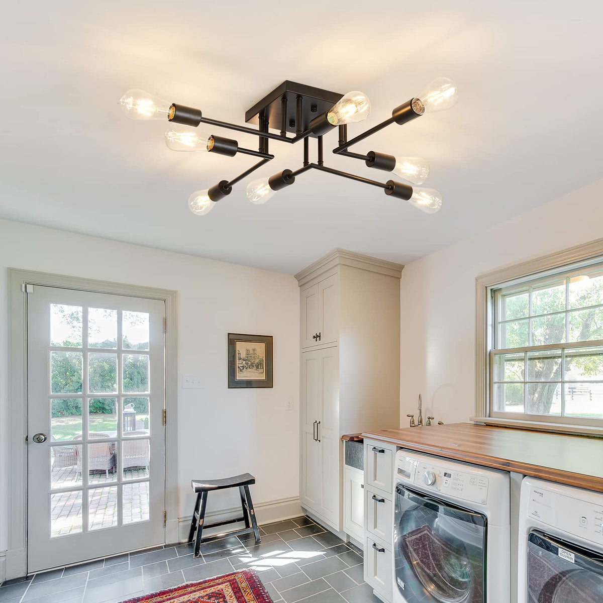 Asgyisa 8-Lights Semi Flush Mount Ceiling Light Fixture Modern Metal Black Sputnik Chandeliers With E26 Bulb Base Close To Ceili