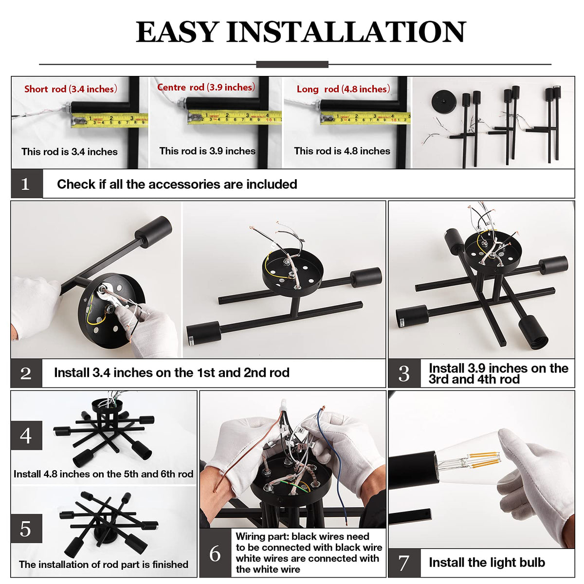 Q: What styles of home decor does this chandelier complement?A: The matte black finish and retro design of the chandelier make it suitable for both modern and vintage home decor styles, enhancing spaces like dining rooms, kitchens, and living areas.