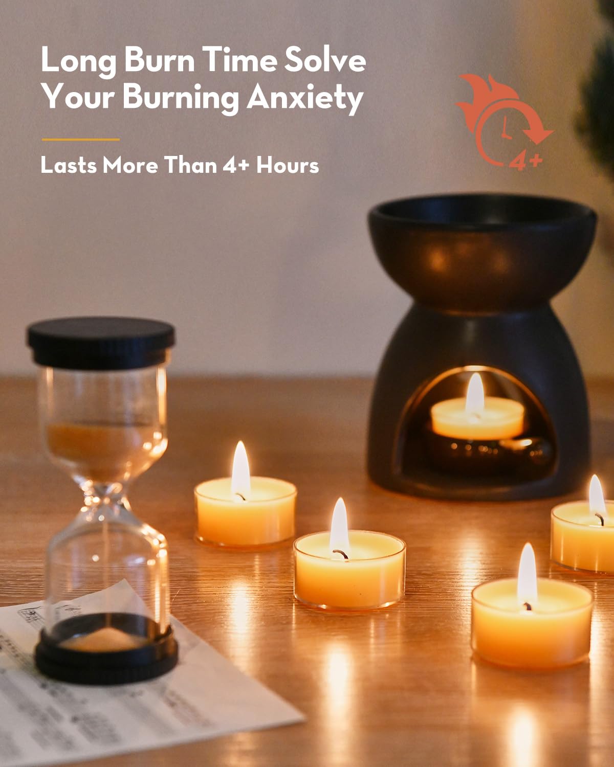 Q: How long do Ashlux beeswax tealight candles burn?A: Ashlux beeswax tealight candles burn for approximately 4 hours, providing a long-lasting and warm glow for your events.