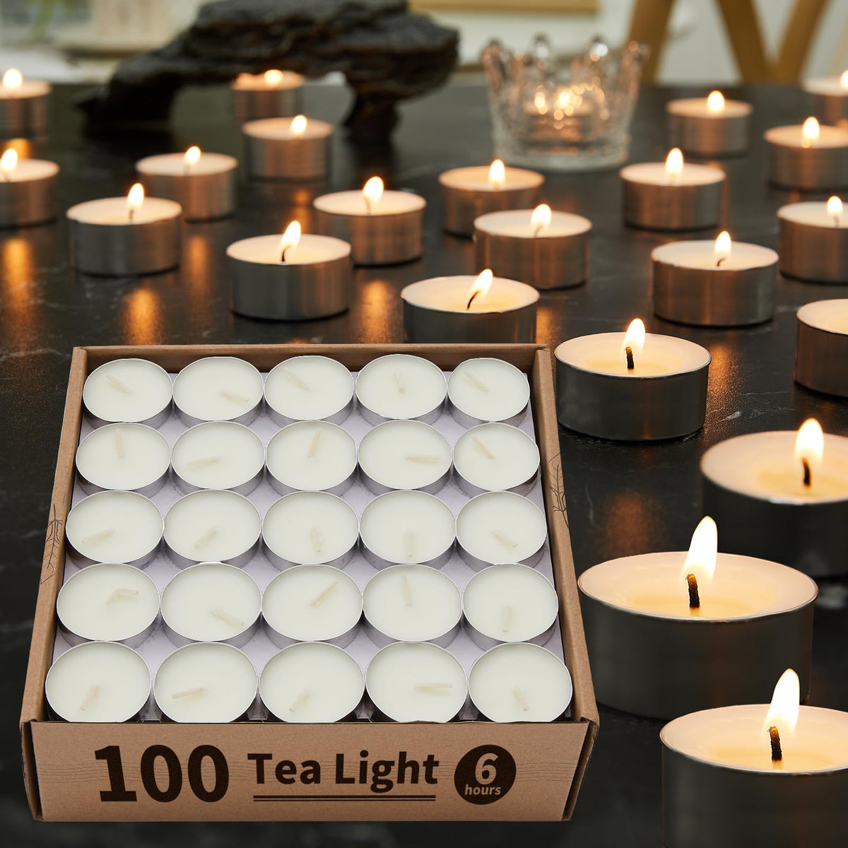 Ashlux Unscented Palm Tea Lights Candles 100 Pack Bulk, 6 To 7 Hours Long Burning White Tea Lights,Non-Paraffin, Smokeless, Mini Tealight Candles For Wedding, Table Centerpiece, Party, Power Outages