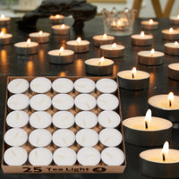 Ashlux 100% Natural Palm Wax Tea Lights Candles in Bulk 25 White, Smokeless, Dripless & Long Lasting Tea Candles