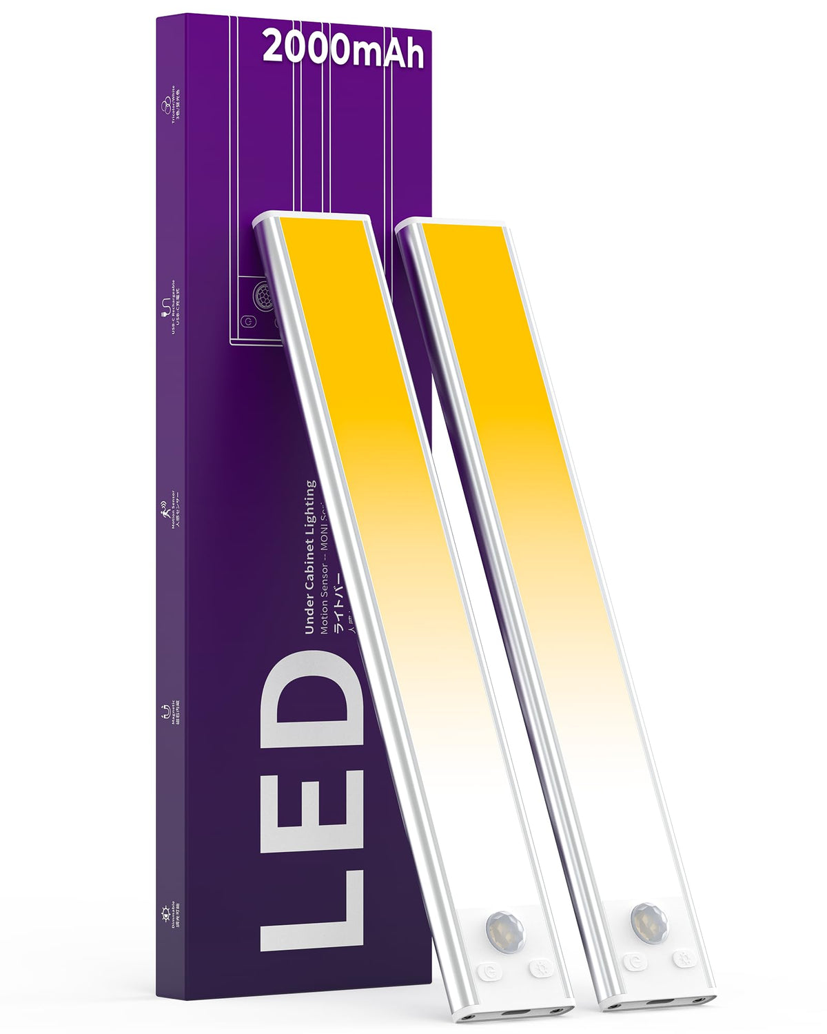 Asoko Home Under Cabinet Lights Motion Sensor Light Indoor Rechargeable Led Closet Lights Battery Operated Under Cabinet Lighting Wireless Under Cabinet Lights Motion Sensor Light Indoor 3-Light Colors 2000Mah Rechargeable Led Closet Lights Battery Operated Under Cabinet Lighting Wireless (3-Light Colors, 2Pack)