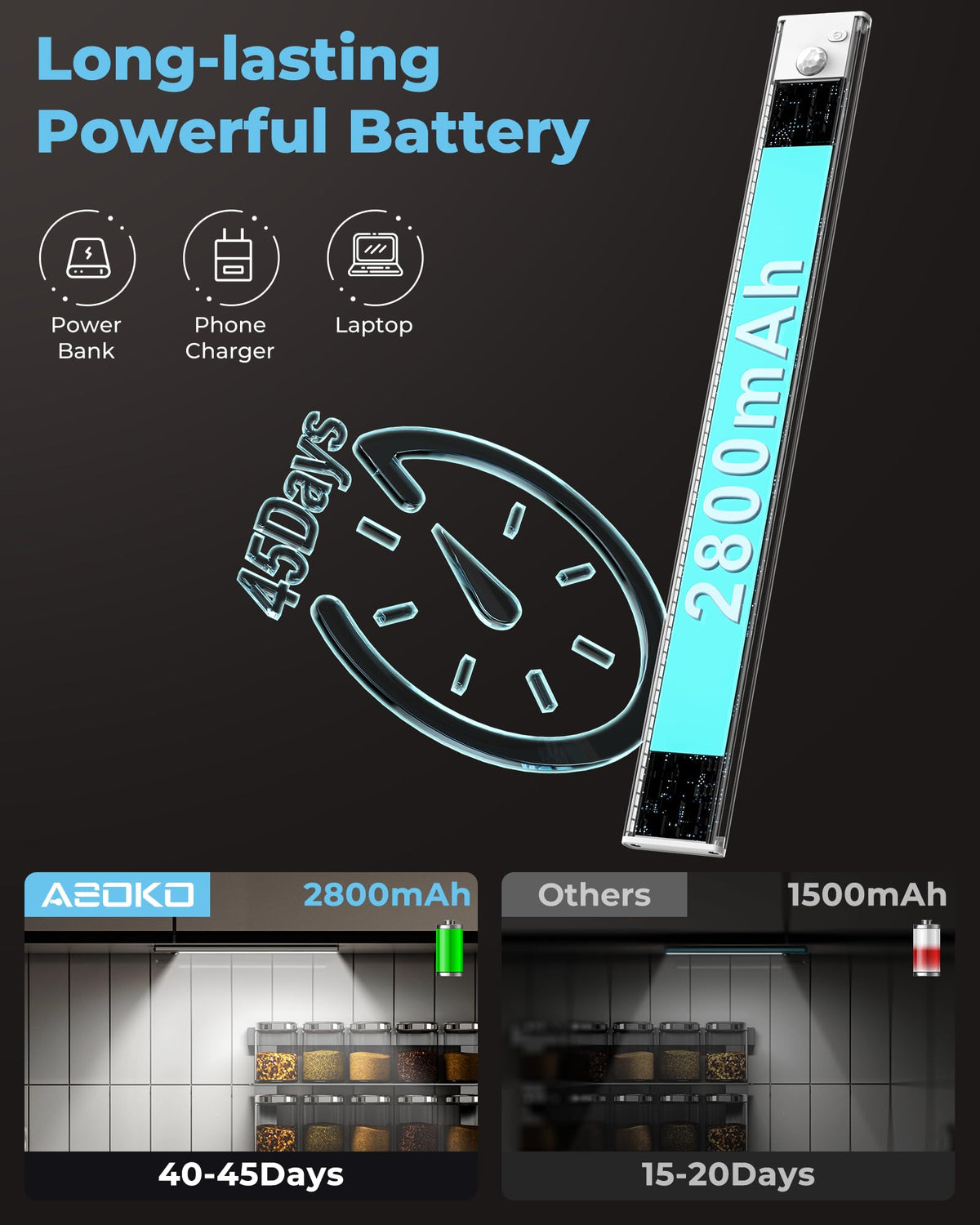Asoko Under Cabinet Lights Motion Sensor, 2800Mah Battery Operated Closet Light Rechargeable Under Counter Lights For Kitchen Un