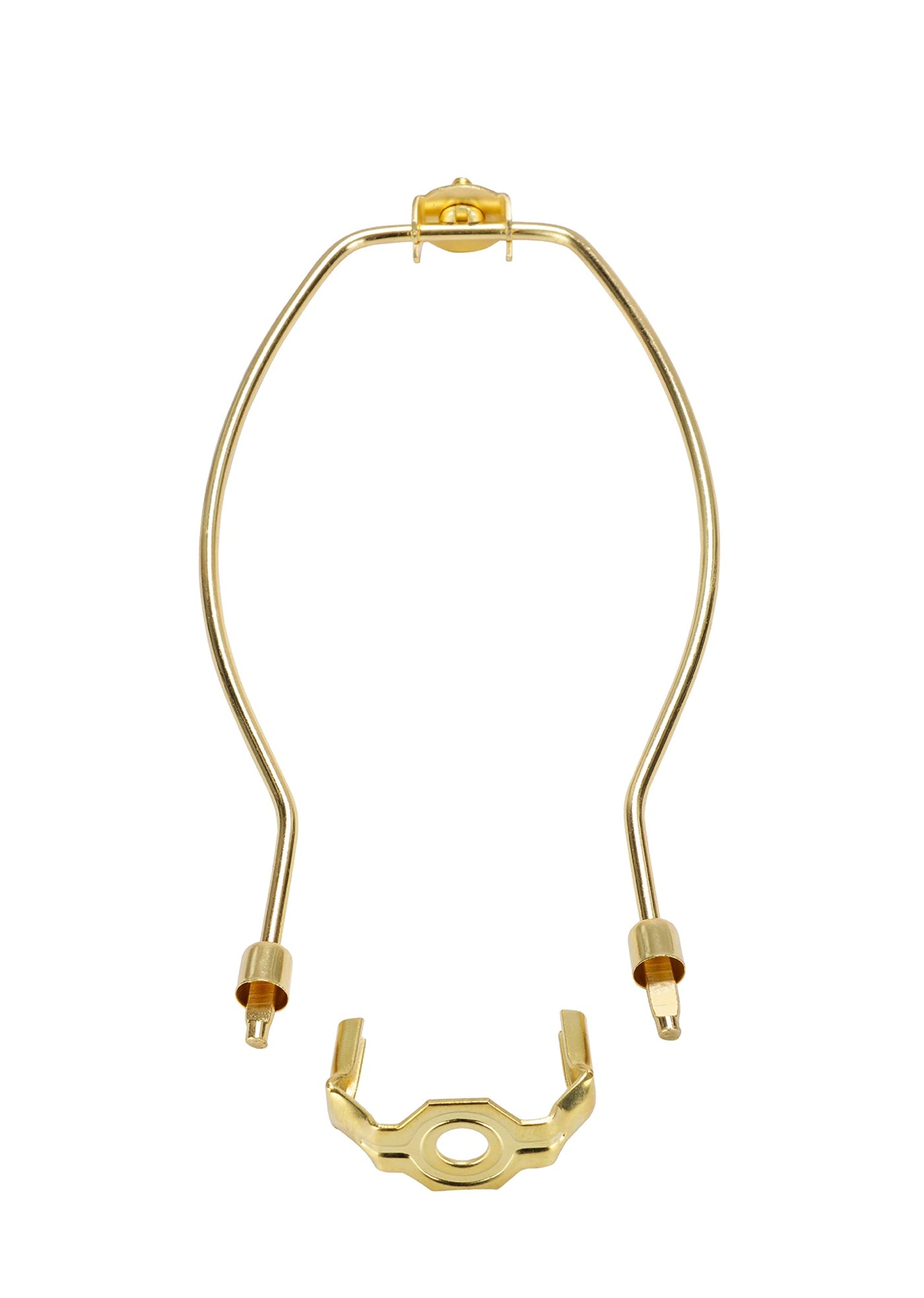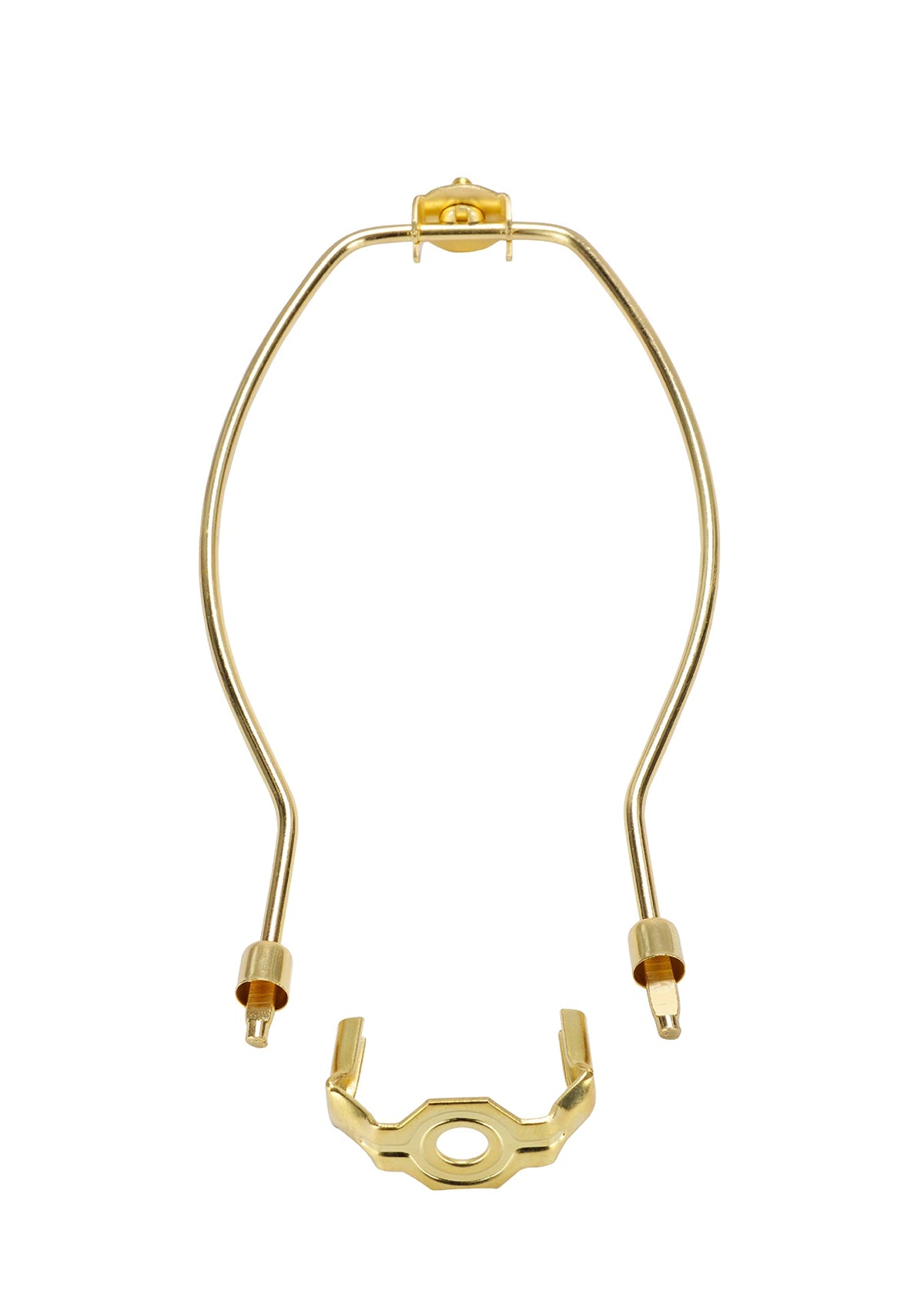 Aspen Creative is dedicated to offering a wide assortment of attractive and well-priced portable lamps, kitchen pendants, vanity wall fixtures, outdoor lighting fixtures, lamp shades, and lamp accessories. We have in-house designers that follow current trends and develop cool new products to meet those trends. Aspen Creative offers a 1 pack of 9'' Lamp Harp with Saddle in Polished Brass Finish. Lamp harp has a 2 piece detachable design with threaded top and Fits Standard Finials (Not Included). It is 9 High (Measures from the top shoulder to the bottom of the prong). Used to attach a spider construction lamp shade to table lamps and floor lamps.