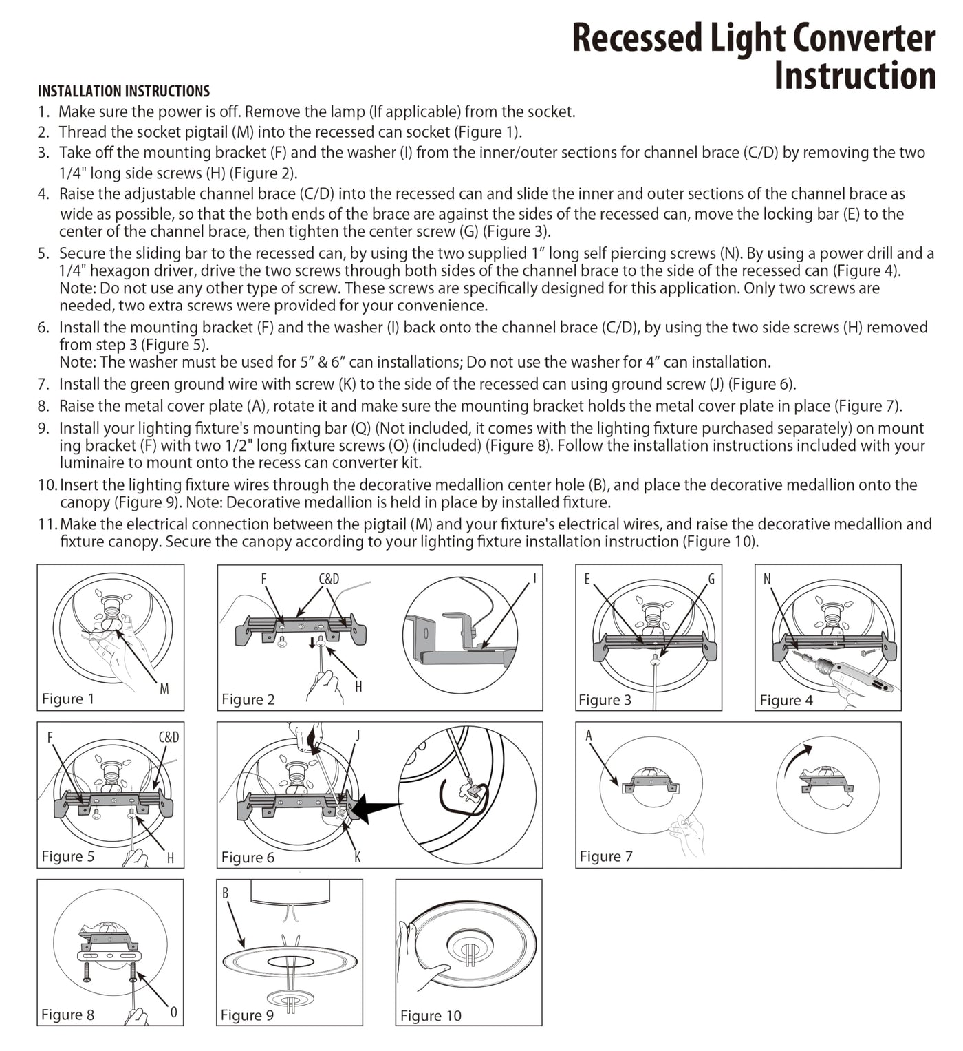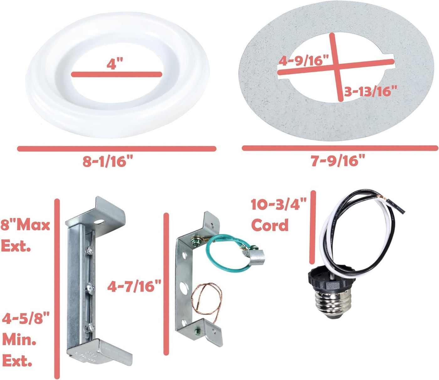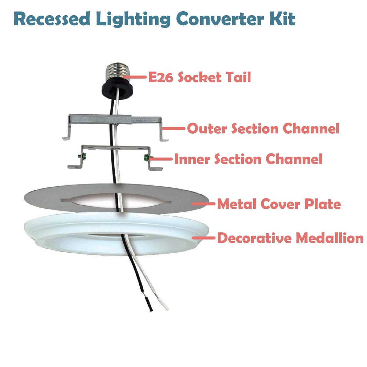 Aspen Creative Item #21067-11Aspen Creative Offers A One Pack Recessed Light Fixture Converter Kit In White.The Converter Kit Includes All Required Mounting Hardware For Easy Installation, With An Adjustable Mounting Bar That Can Be Used For Any Size Between 4 - 7 Inches And Can Support Up To 25 Pounds.This Product Is Also Compatable With Recessed Or Can Lights That Use A Medium Base Light Bulb (Par16, R16, A19, R20, Par20, Br25, Br30, R30, Par30, Br38, Par38, Br40 Or R40).The Kit'S Primary Functions Are To Provide A Secure Mounting Point, And Conceal Wiring And Gaps For Your New Fixtures Installation.Our Conveter Kit Features A Sleek And Timeless Design That Effortlessly Complements Ceiling Mounted Fixtures And Elevates Your Space. All Our Kits Are Made With High Quality Metal That Has Longevity In Anticipation Of Climate And Mass.This Product Is Ideal For All Types Of Construction From Residential To Commercial Buildings, Allowing The Ability To Upgrade Any Setting With A New And Modern Look.