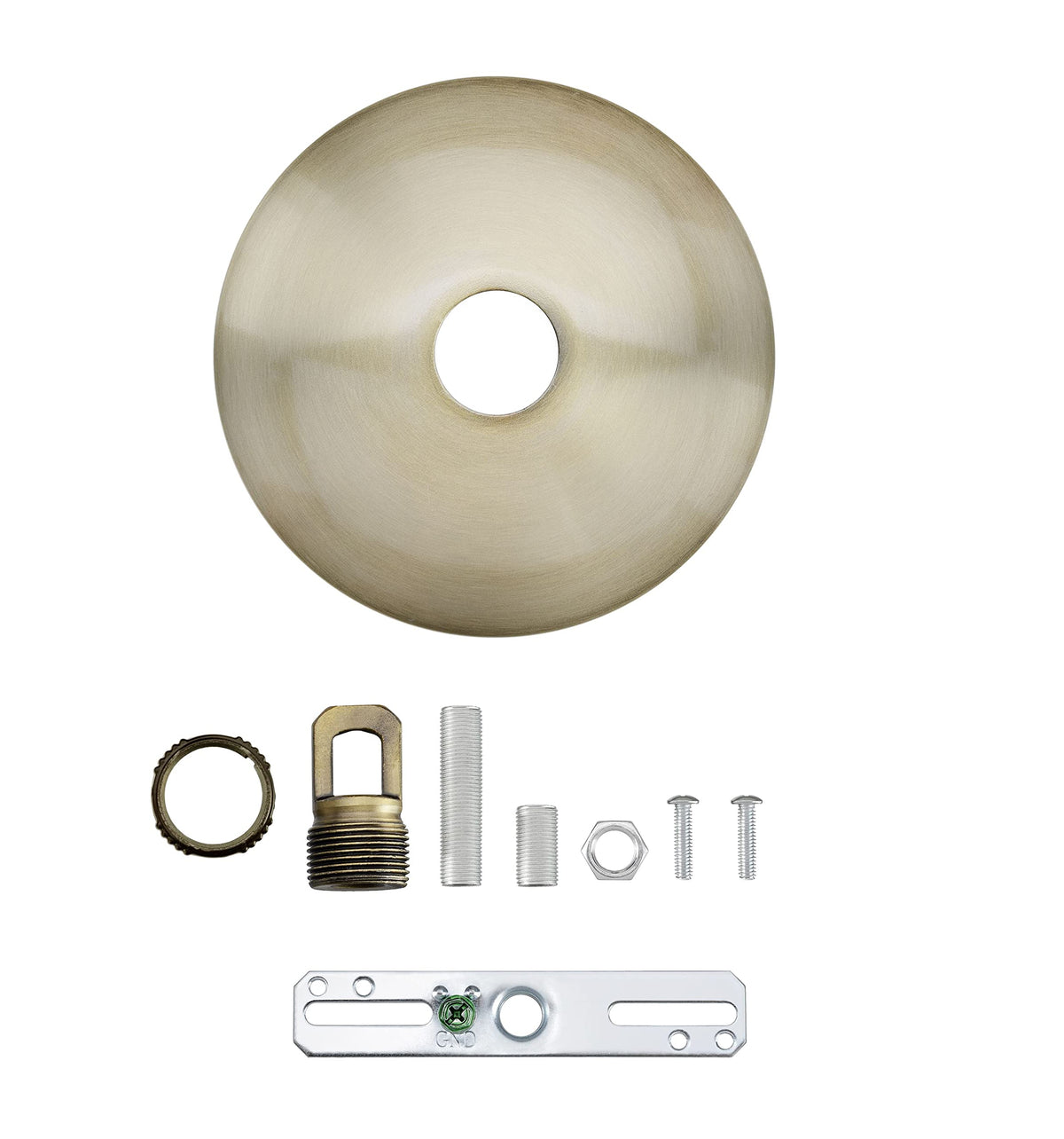 Aspen Creative Offers A 1 Pack Chandelier & Light Fixture Canopy Kit In Antique Brass . Canopy Dimensions Are 5'' Diameter X 2'' Height With A 1'' Center Hole. Includes - Collar Loop & Mounting Hardware. Suitable To Replace Or Update Canopies On A New Or Existing Ceiling Fixture Or Hanging Pendant Ceiling Light And Chandeliers.