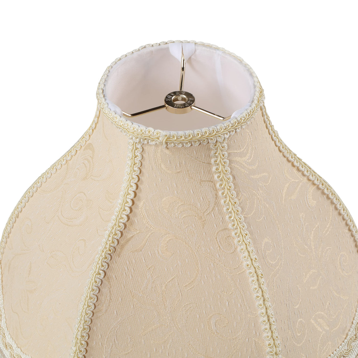 Aspen Creative offers a 1 pack handsewn scallop dome replacement lamp shade in wheat. Made with jacquard textured fabric with fringe. The lamp shade size is 5 inch top, 13 inch bottom and 9-1/2 inch slant height. This lamp shade is a spider construction which is designed to attach to a lamp harp. Suitable for table lamps, accent lamps, vintage lamps, candle stick lamps, kid's room lamps, bedroom lamps, bedroom table lamps, night stand lamps, reading lamps, bedside reading lamps, living room end table lamps and bedroom night stand lamps.