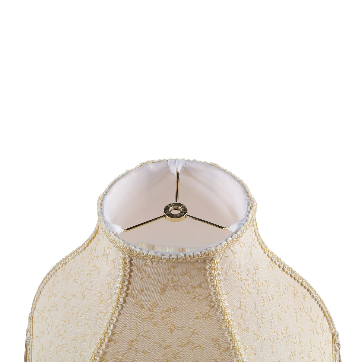 Q: What type of fabric is used in this lamp shade?A: This lamp shade is made from jacquard textured fabric, which adds a stylish touch and features a beautiful butter cream color.