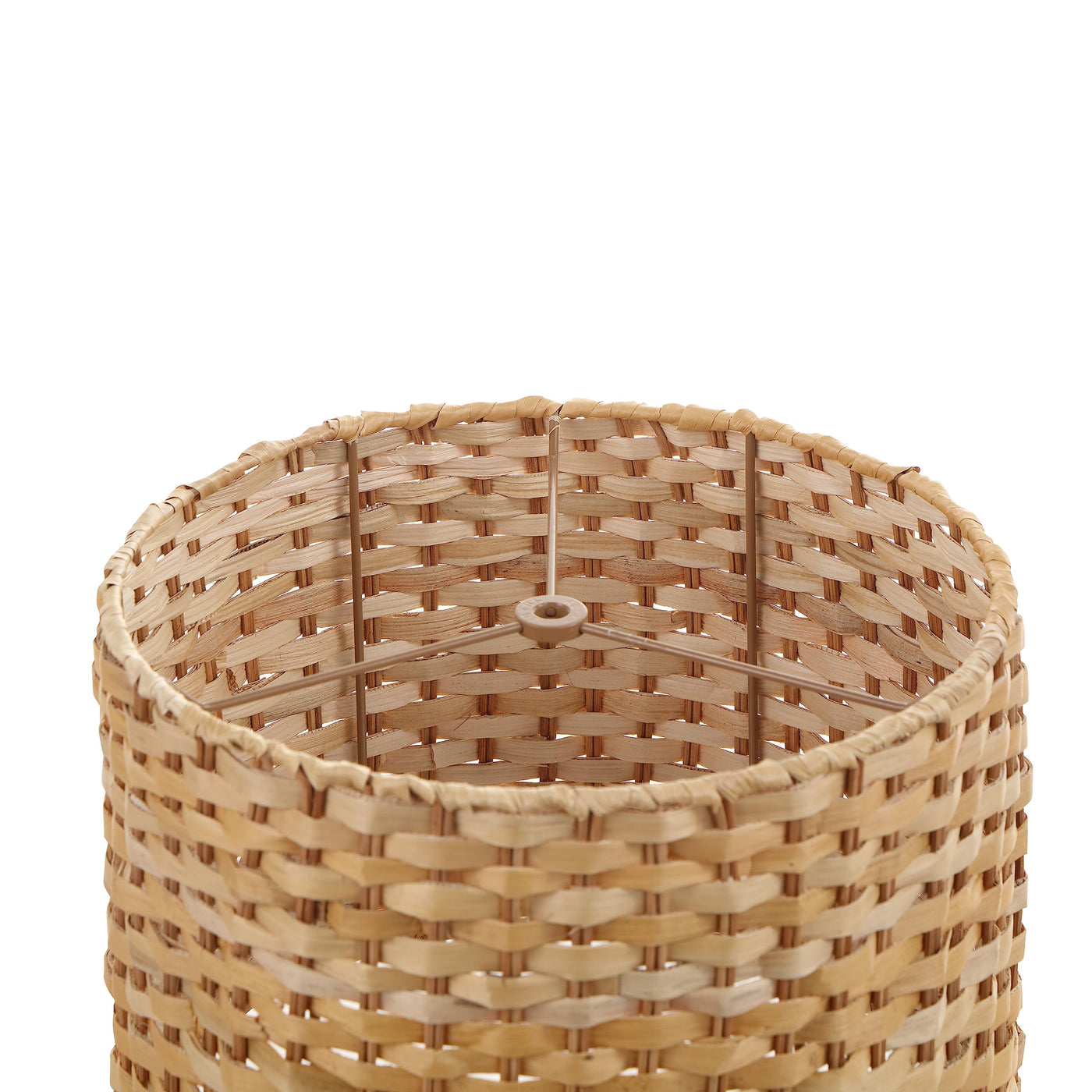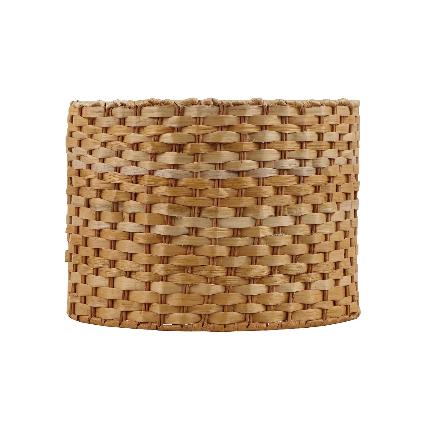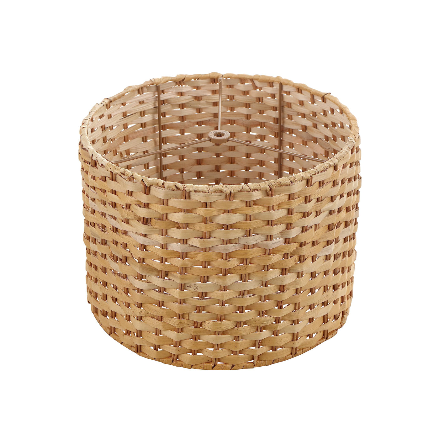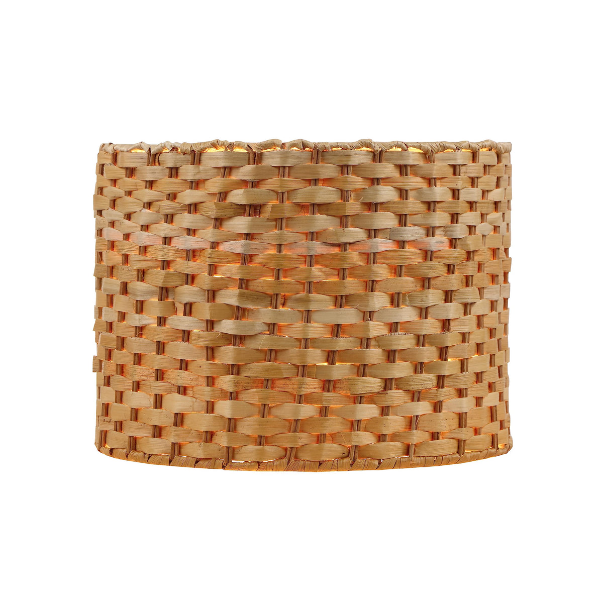 Aspen Creative Item #31602Aspen Creative offers a transitional drum lamp shade handmade in natural colored banana leaf with a weave pattern. The lamp shade size is 12 inch top, 12 inch bottom and 9 inch slant height.This lamp shade is a spider construction which is designed to attach to a lamp harp.Our lamp shades are one-of-a-kind due to their handmade nature. As a result of environment and climate conditions, sizes and colors may slightly vary. It's important to note that minor imperfections are not considered faults but rather add to the appeal of each lamp shade. Additionally, the colors of the lamp shades can vary depending on when they were woven. Please note that our lamp shades are made from plant based material (no plastic) and may have a natural, organic fragrance that diminishes over time.Suitable for table lamps, accent lamps, vintage lamps, candle stick lamps, kid's room lamps, bedroom lamps, bedroom table lamps, night stand lamps, reading lamps, bedside reading lamps, living room end table lamps and bedroom night stand lamps.