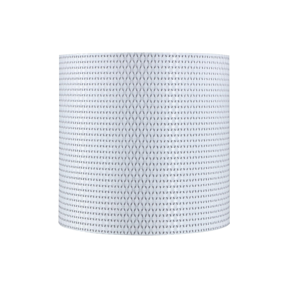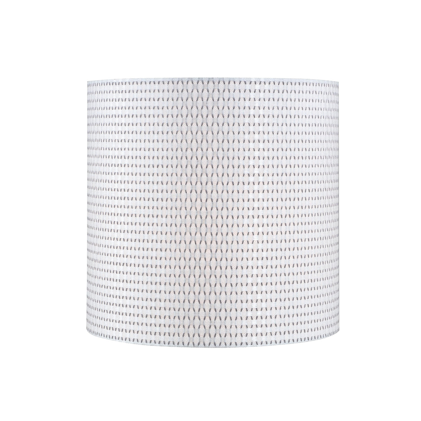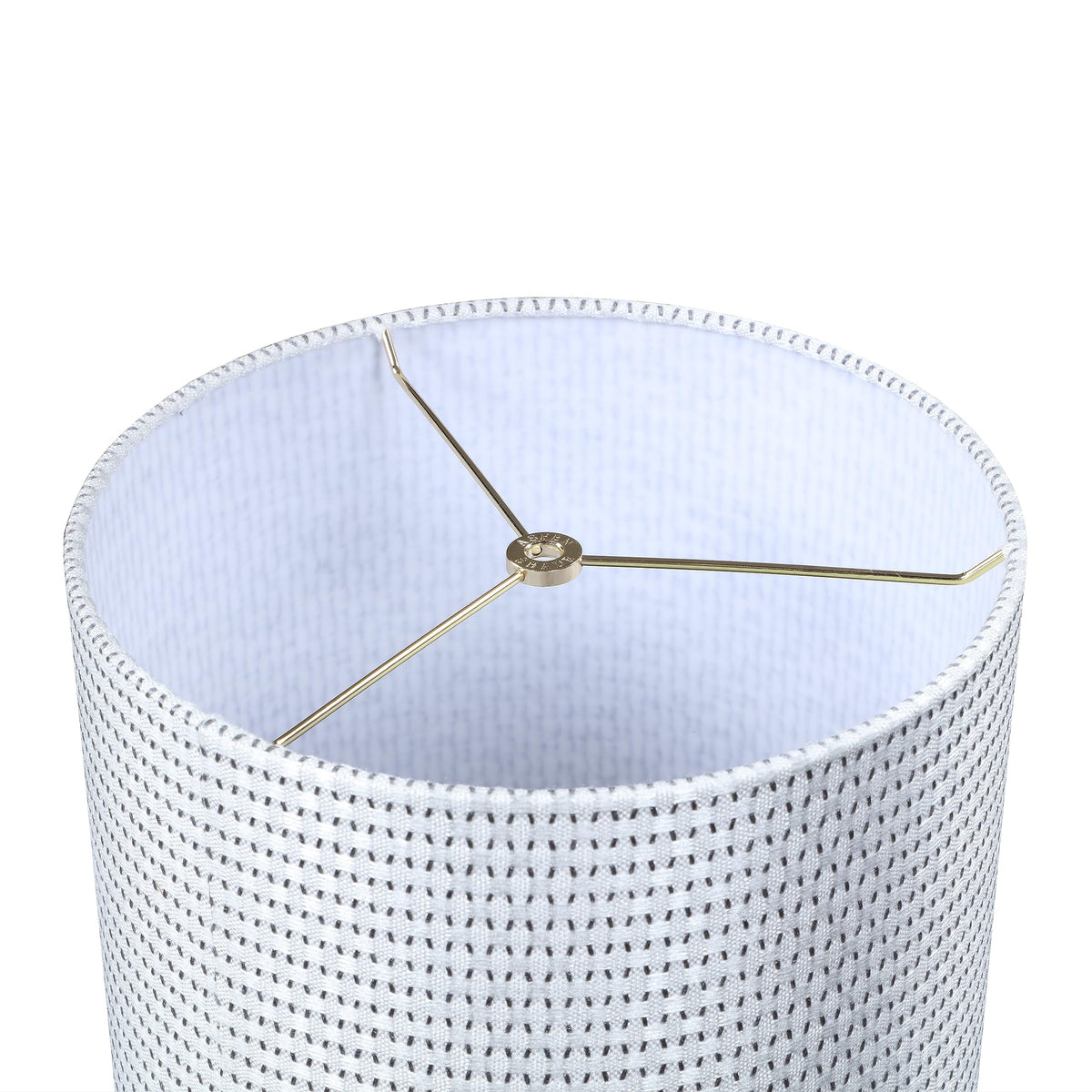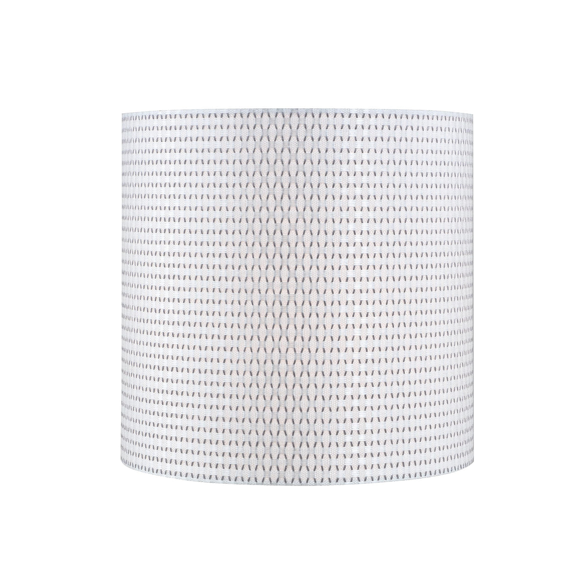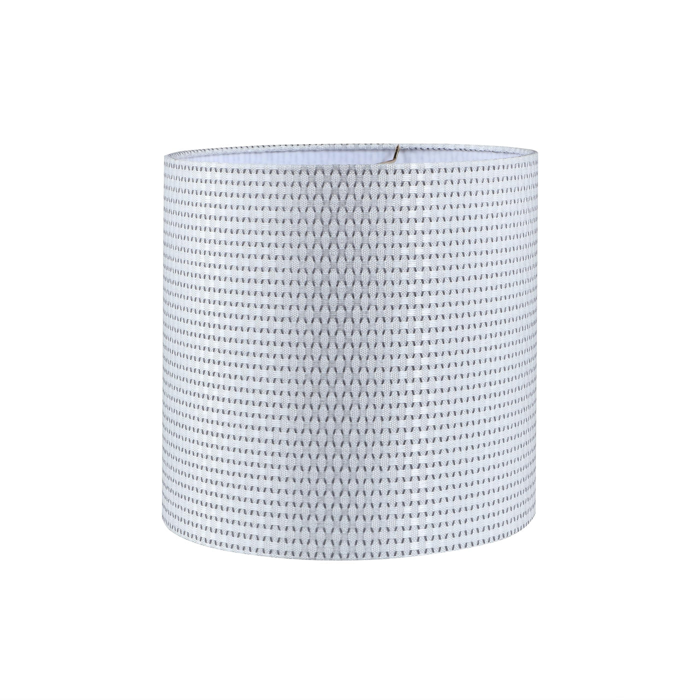Aspen Creative Item #31616Aspen Creative offers a 1 pack drum shaped spider lamp shade in white & gray that will enhance your living space.Shade Dimensions: 12" Top x 12" Bottom x 12" Height.The shade is made with a spider construction, this allows the shade to sit perfectly centered on a lamp harp attachment. It is compatible with a saddle base, and uno slip-on base lamp harp or a bulb clip adapter.Crafted with precision and attention to detail, our lamp shades are made with high-quality materials that are built to last. They are made to withstand daily use while still maintaining their shape and beauty.This product is suitable for a wide range of lighting options including table lamps, accent lamps, vintage lamps, candle stick lamps, kid's room lamps, bedroom lamps, bedroom table lamps, night stand lamps, reading lamps, bedside reading lamps, living room end table lamps, bedroom night stand lamps, and pendant lights.