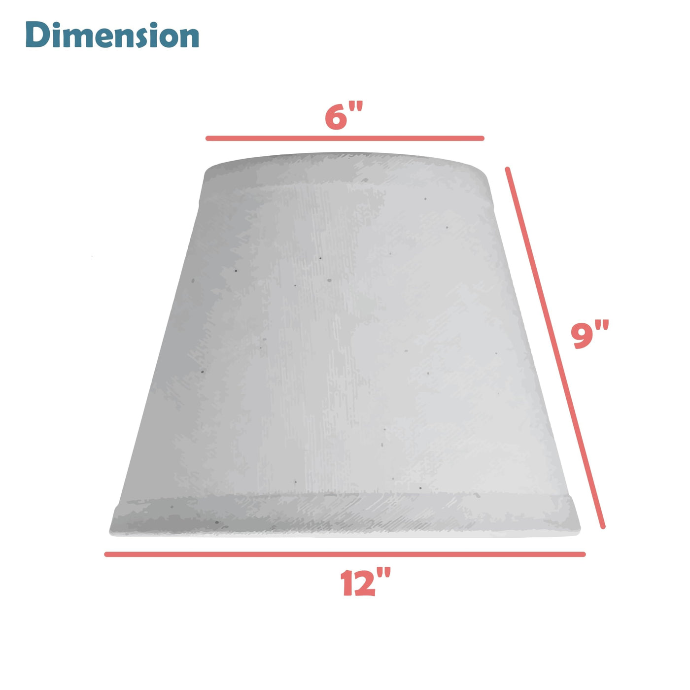 Q: What are the dimensions of the Aspen Creative 32069 lamp shade?A: The Aspen Creative 32069 lamp shade has a top diameter of 6 inches, a bottom diameter of 12 inches, and a slant height of 9 inches.