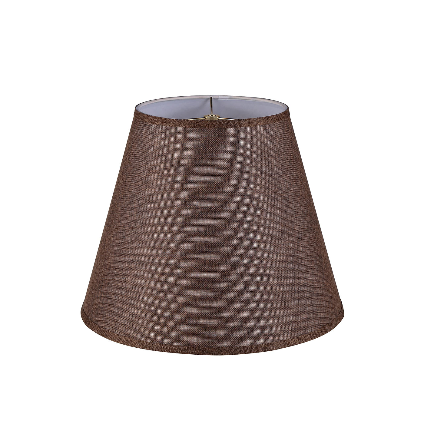Aspen Creative offers a 1 pack of empire shaped lamp shades with spider fitter. Made with dark brown colored burlap texture fabric. The lamp shade dimensions are 9 inch top, 16 inch bottom, 13 inch slant height. This lamp shade is a spider construction which is designed to attach to a lamp harp. Our hardback shades use Virgin Styrene backing board to produce a warm, natural & smooth light – more appealing than shades made with recycled Styrene board that can crack & yellow over time. Suitable for table lamps, accent lamps, vintage lamps, candle stick lamps, kid's room lamps, bedroom lamps, bedroom table lamps, night stand lamps, reading lamps, bedside reading lamps, living room end table lamps, bedroom night stand lamps and pendant lights.
