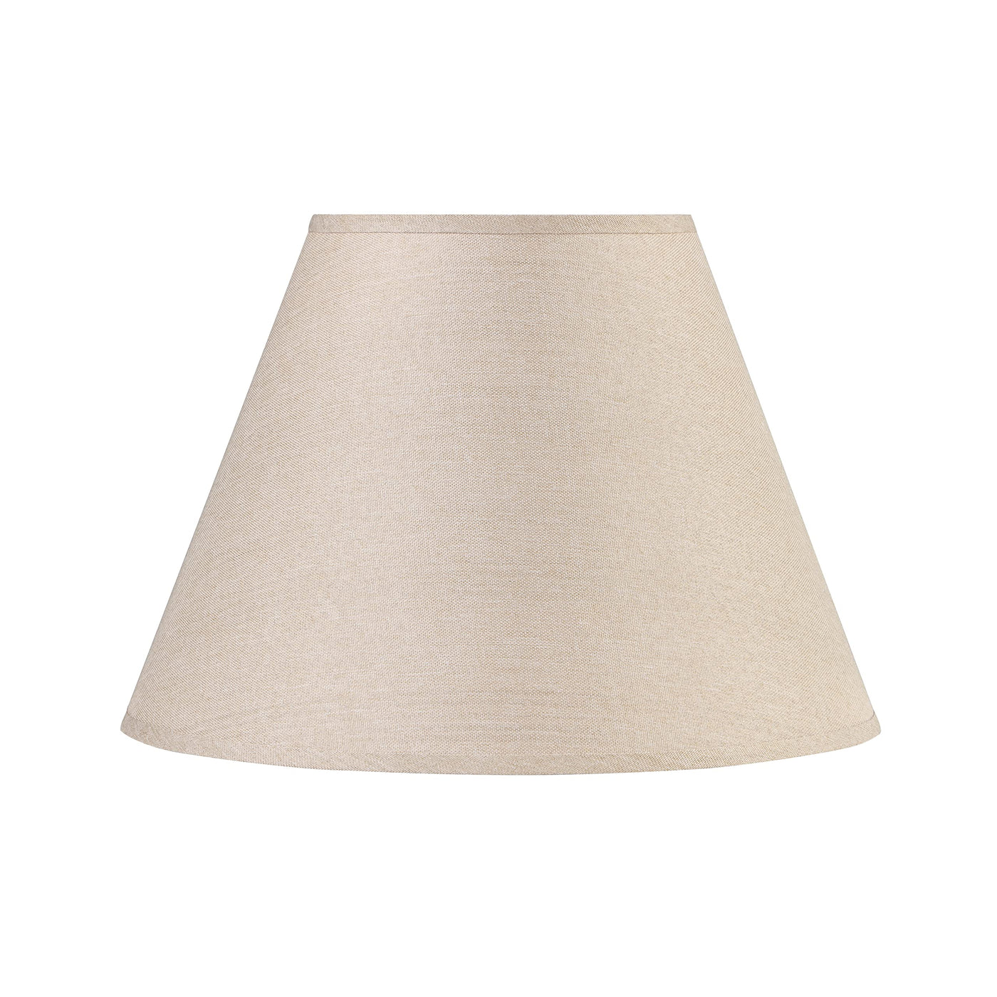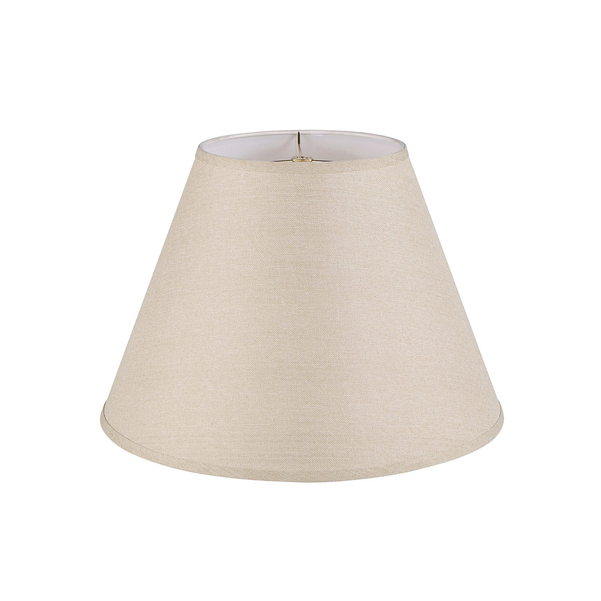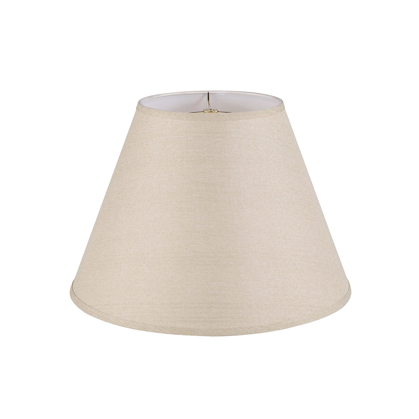 Aspen Creative Item 32092AAspen Creative offers a 1 pack empire shaped spider lamp shade in khaki that will enhance your living space.Shade Dimensions: 9" Top x 18" Bottom x 13" Slant HeightThe shade is made with a spider construction, this allows the shade to sit perfectly centered on a lamp harp attachment. It is compatible with a saddle base, and uno slip-on base lamp harp or a bulb clip adapter.Crafted with precision and attention to detail, our lamp shades are made with high-quality materials that are built to last. They are made to withstand daily use while still maintaining their shape and beauty.This product is suitable for a wide range of lighting options including table lamps, accent lamps, vintage lamps, candle stick lamps, kid's room lamps, bedroom lamps, bedroom table lamps, night stand lamps, reading lamps, bedside reading lamps, living room end table lamps, bedroom night stand lamps, and pendant lights.