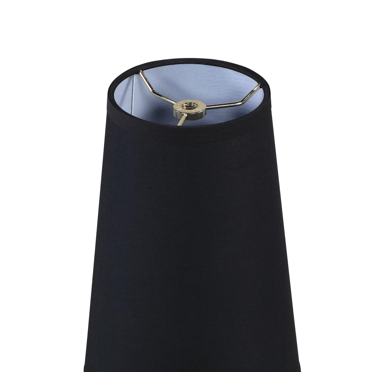 Aspen Creative Item #32166Aspen Creative offers a 1 pack empire shaped spider lamp shade in black that will enhance your living space.Shade Dimensions: 4 3/4" Top x 6 3/4" Bottom x 10" Slant HeightThe shade is made with a spider construction, this allows the shade to sit perfectly centered on a lamp harp attachment. It is compatible with a saddle base, and uno slip-on base lamp harp or a bulb clip adapter.Crafted with precision and attention to detail, our lamp shades are made with high-quality materials that are built to last. They are made to withstand daily use while still maintaining their shape and beauty.This product is suitable for a wide range of lighting options including table lamps, accent lamps, vintage lamps, candle stick lamps, kid's room lamps, bedroom lamps, bedroom table lamps, night stand lamps, reading lamps, bedside reading lamps, living room end table lamps, bedroom night stand lamps, and pendant lights.